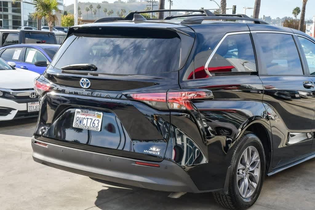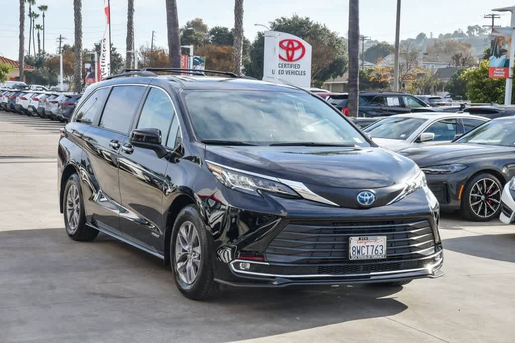 CARFAX One-Owner. Certified. Midnight Black Metallic 2021 Toyota Sienna XLE FWD CVT 2.5L I4 17 Alloy Wheels, 3rd row seats: split-bench, 4-Wheel Disc Brakes, 8 Speakers, Alloy wheels, AM/FM radio: SiriusXM, Apple CarPlay/Android Auto, Auto-dimming door mirrors, Auto-dimming Rear-View mirror, Automatic temperature control, Brake assist, Bumpers: body-color, Door auto-latch, Driver door bin, Driver vanity mirror, Drivers Seat Mounted Armrest, Dual front impact airbags, Dual front side impact airbags, Electronic Stability Control, Emergency communication system: Safety Connect with 3-year trial, Exterior Parking Camera Rear, Four wheel independent suspension, Front anti-roll bar, Front Bucket Seats, Front dual zone A/C, Front Heated Bucket Seats, Front reading lights, Garage door transmitter: HomeLink, Heated door mirrors, Heated front seats, Illuminated entry, Knee airbag, Lane Departure Warning System, Leather Shift Knob, Leather steering wheel, Occupant sensing airbag, Overhead airbag, Overhead console, Panic alarm, Passenger door bin, Passenger seat mounted armrest, Passenger vanity mirror, Power door mirrors, Power driver seat, Power Liftgate, Power moonroof, Power passenger seat, Radio: Audio Plus, Radio: Premium JBL Audio, Rear air conditioning, Rear anti-roll bar, Rear dual zone A/C, Rear side impact airbag, Reclining 3rd row seat, Remote keyless entry, Roof Rails, SofTex Seat Trim, Speed control, Speed-sensing steering, Split folding rear seat, Spoiler, Steering wheel mounted audio controls, Telescoping steering wheel, Tilt steering wheel, Turn signal indicator mirrors, Wireless Charger, XLE Plus Package.