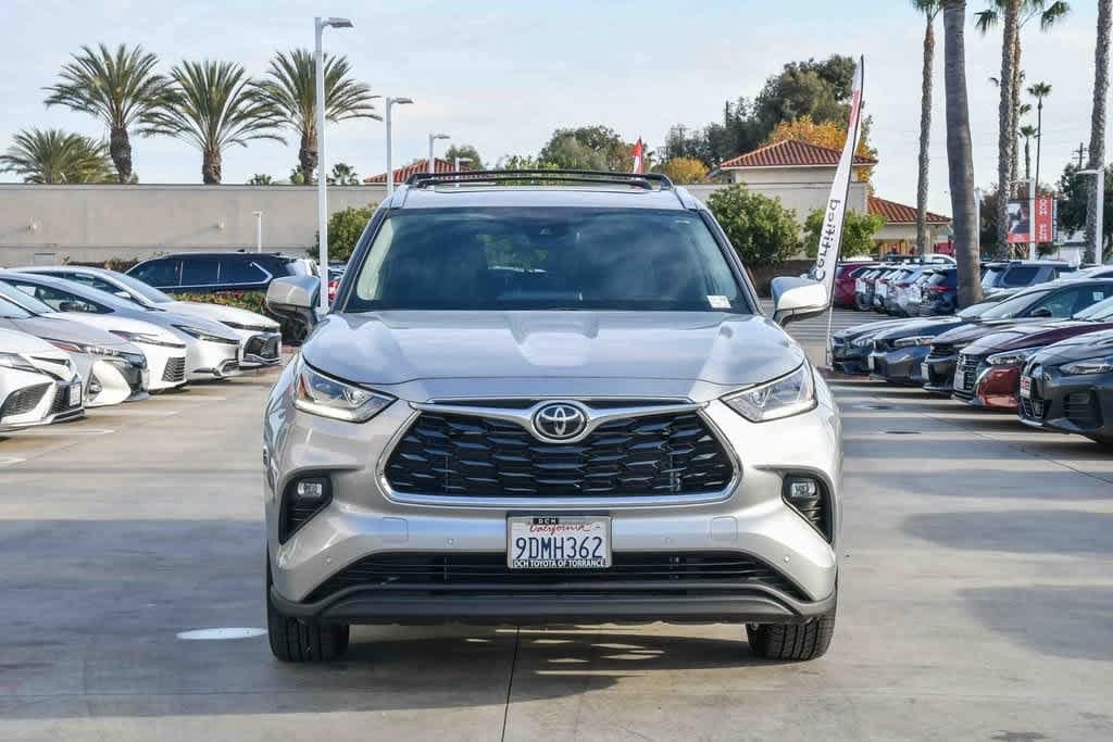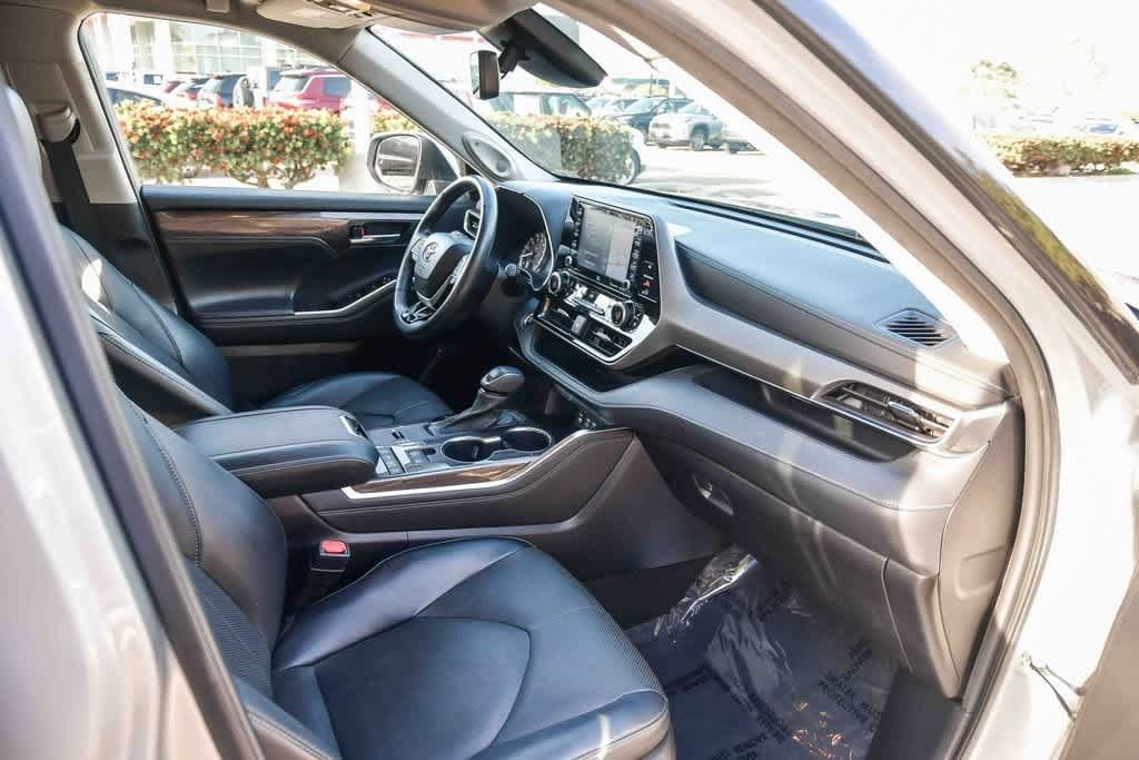 CARFAX One-Owner. Clean CARFAX. Celestial Silver Metallic 2022 Toyota Highlander Limited FWD 8-Speed Automatic 3.5L V6 DOHC 11 Speakers, 3rd row seats: split-bench, 4-Wheel Disc Brakes, AM/FM radio: SiriusXM, Apple CarPlay/Android Auto, Auto-dimming Rear-View mirror, Automatic temperature control, Brake assist, Bumpers: body-color, Chrome wheels, Driver door bin, Driver vanity mirror, Dual front impact airbags, Dual front side impact airbags, Electronic Stability Control, Emergency communication system: Safety Connect with 1-year trial, Exterior Parking Camera Rear, Four wheel independent suspension, Front anti-roll bar, Front Bucket Seats, Front Center Armrest, Front dual zone A/C, Garage door transmitter: HomeLink, Heated door mirrors, Heated front seats, Heated steering wheel, Heated/Ventilated Front Bucket Seats, Illuminated entry, Knee airbag, Leather Seat Trim, Leather Shift Knob, Memory seat, Navigation system: Dynamic Navigation (3-year trial), Occupant sensing airbag, Overhead airbag, Overhead console, Panic alarm, Passenger door bin, Passenger vanity mirror, Power door mirrors, Power driver seat, Power Liftgate, Power moonroof, Power passenger seat, Radio: Premium Audio w/JBL Clari-Fi, Rear air conditioning, Rear anti-roll bar, Rear reading lights, Reclining 3rd row seat, Remote keyless entry, Roof rack: rails only, Security system, Speed control, Speed-sensing steering, Split folding rear seat, Spoiler, Steering wheel mounted audio controls, Telescoping steering wheel, Tilt steering wheel, Turn signal indicator mirrors, Ventilated front seats, Wheels: 20 Chrome Alloy.