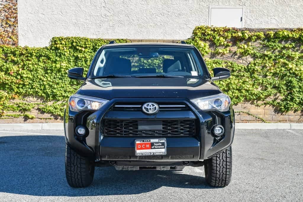 CARFAX One-Owner. Clean CARFAX. Certified. Midnight Black Metallic 2024 Toyota 4Runner SR5 4WD 5-Speed with ECT 4.0L V6 DOHC 24V 17 6-Spoke Alloy Wheels, 4-Wheel Disc Brakes, 8 Speakers, Alloy wheels, AM/FM radio: SiriusXM, Anti-whiplash front head restraints, Apple CarPlay/Android Auto, Brake assist, Bumpers: body-color, Driver vanity mirror, Dual front impact airbags, Dual front side impact airbags, Electronic Stability Control, Emergency communication system: Safety Connect (1-year trial), Exterior Parking Camera Rear, Fabric Seat Trim, Front anti-roll bar, Front Bucket Seats, Front Center Armrest, Front wheel independent suspension, Heated door mirrors, Illuminated entry, Knee airbag, Leather Shift Knob, Leather steering wheel, Occupant sensing airbag, Overhead airbag, Panic alarm, Passenger door bin, Passenger vanity mirror, Power door mirrors, Power driver seat, Rear anti-roll bar, Rear seat center armrest, Remote keyless entry, Security system, Speed control, Speed-sensing steering, Split folding rear seat, Spoiler, Steering wheel mounted audio controls, Telescoping steering wheel, Tilt steering wheel.
