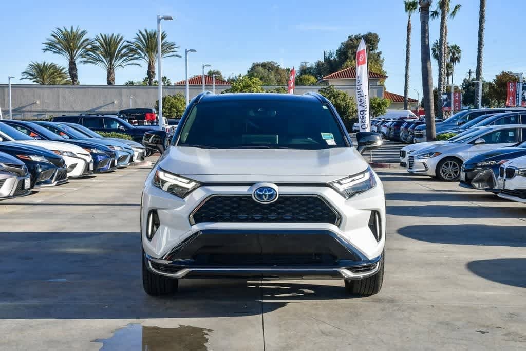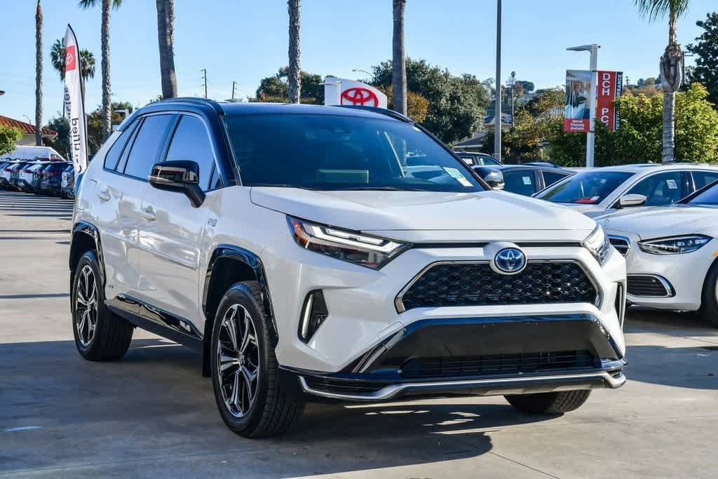 CARFAX One-Owner. Wind Chill Pearl/Midnight Black Metallic 2024 Toyota RAV4 Prime XSE AWD CVT 2.5L 4-Cylinder DOHC 11 Speakers, 19 Alloy Wheels, 4-Wheel Disc Brakes, ABS brakes, Alloy wheels, AM/FM radio: SiriusXM, Auto-dimming Rear-View mirror, Automatic temperature control, Brake assist, Bumpers: body-color, Driver door bin, Driver vanity mirror, Dual front impact airbags, Dual front side impact airbags, Electronic Stability Control, Emergency communication system: Safety Connect (10-year trial), Exterior Parking Camera Rear, Four wheel independent suspension, Front anti-roll bar, Front Bucket Seats, Front Center Armrest, Front dual zone A/C, Front reading lights, Garage door transmitter: HomeLink, Heated door mirrors, Heated Front Bucket Seats, Heated front seats, Illuminated entry, JBL Audio System, Knee airbag, Leather Shift Knob, Leather steering wheel, Low tire pressure warning, Mixed Media Seat Trim, Navigation system: Drive Connect Cloud Navigation (1-year trial subscription), Occupant sensing airbag, Overhead airbag, Overhead console, Panic alarm, Passenger door bin, Passenger vanity mirror, Power door mirrors, Power driver seat, Power Liftgate, Power moonroof, Radio data system, Rear anti-roll bar, Rear seat center armrest, Rear window wiper, Remote keyless entry, Security system, Speed control, Speed-sensing steering, Split folding rear seat, Spoiler, Steering wheel mounted audio controls, Telescoping steering wheel, Tilt steering wheel, Turn signal indicator mirrors, Variably intermittent wipers.