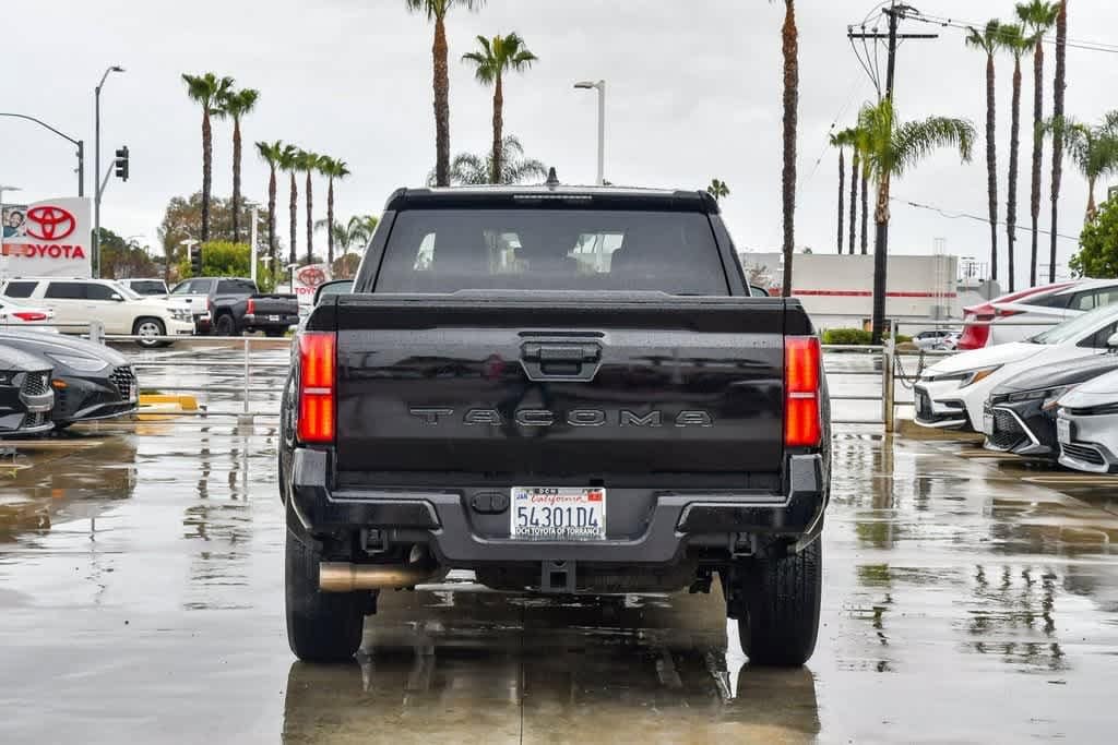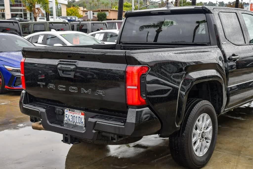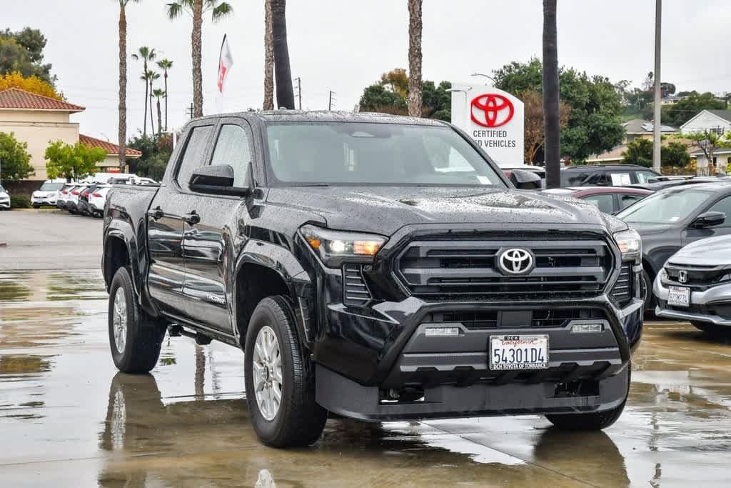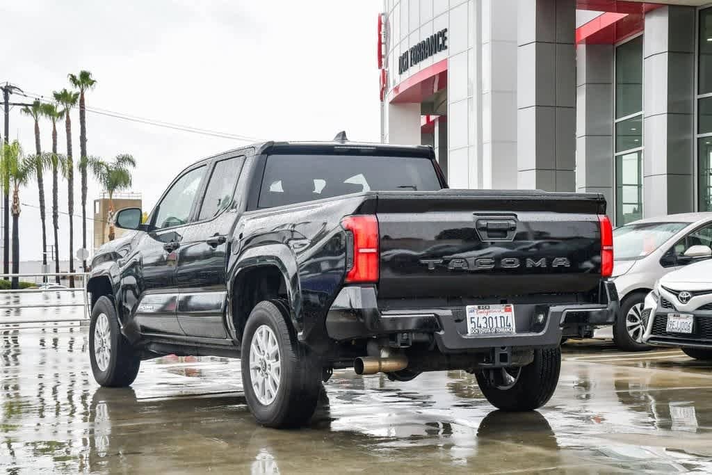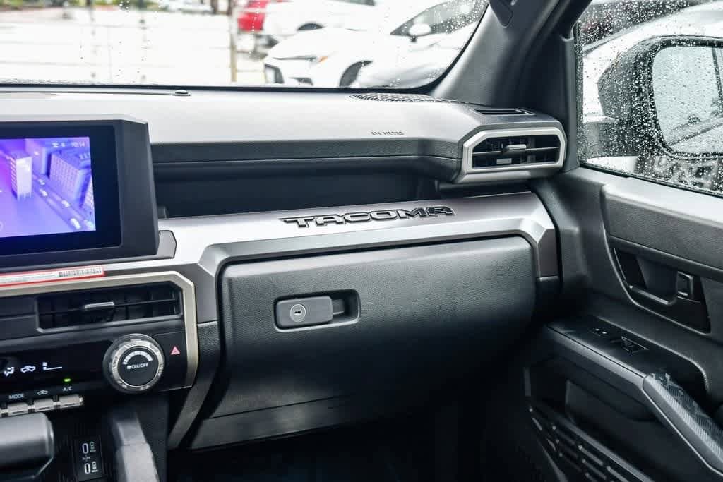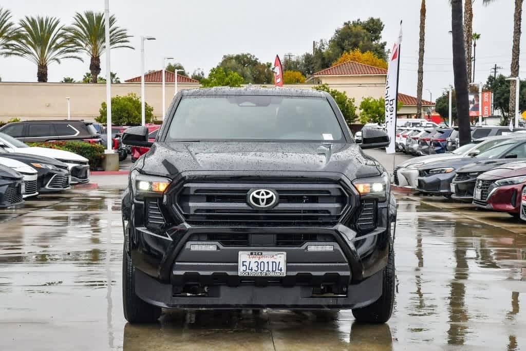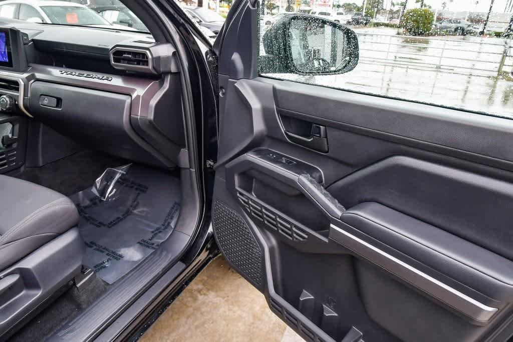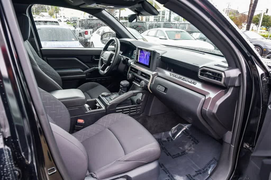 CARFAX One-Owner. Clean CARFAX. Black 2025 Toyota Tacoma SR5 4WD 8-Speed Automatic 2.4L 4-Cylinder 4-Wheel Disc Brakes, 6 Speakers, Alloy wheels, AM/FM radio: SiriusXM, Anti-whiplash front head restraints, Apple CarPlay/Android Auto, Auto-dimming Rear-View mirror, Brake assist, Bumpers: body-color, Driver door bin, Dual front impact airbags, Dual front side impact airbags, Electronic Stability Control, Emergency communication system: Safety Connect (1-year trial), Exterior Parking Camera Rear, Fabric Seat Trim, Four wheel independent suspension, Front anti-roll bar, Front Bucket Seats, Front Center Armrest, Front fog lights, Front reading lights, Heated door mirrors, Illuminated entry, Knee airbag, Occupant sensing airbag, Overhead airbag, Overhead console, Panic alarm, Passenger door bin, Power door mirrors, Radio: 8 Toyota Audio Multimedia, Rear step bumper, Remote keyless entry, Speed control, Speed-sensing steering, Split folding rear seat, Steering wheel mounted audio controls, Telescoping steering wheel, Tilt steering wheel, Wheels: 17 Styled Alloy.