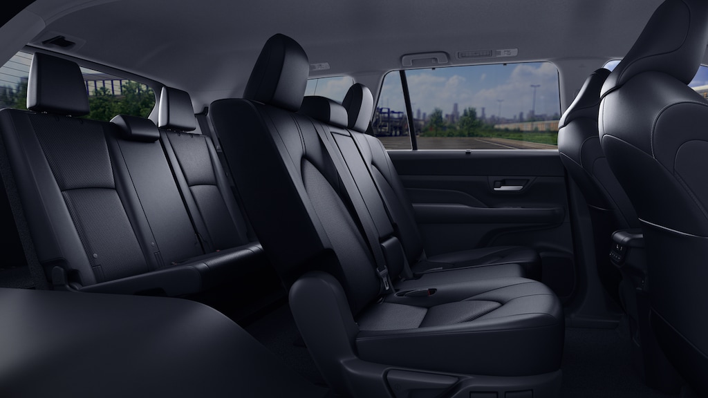 - 7-passenger seating with second-row fold-down captain's chairs and fold-down inboard armrests, adjustable headrests and two cup holders mounted on the floor; and 60/40 split, fold-down third-row seats with sliding headrests and recline function.