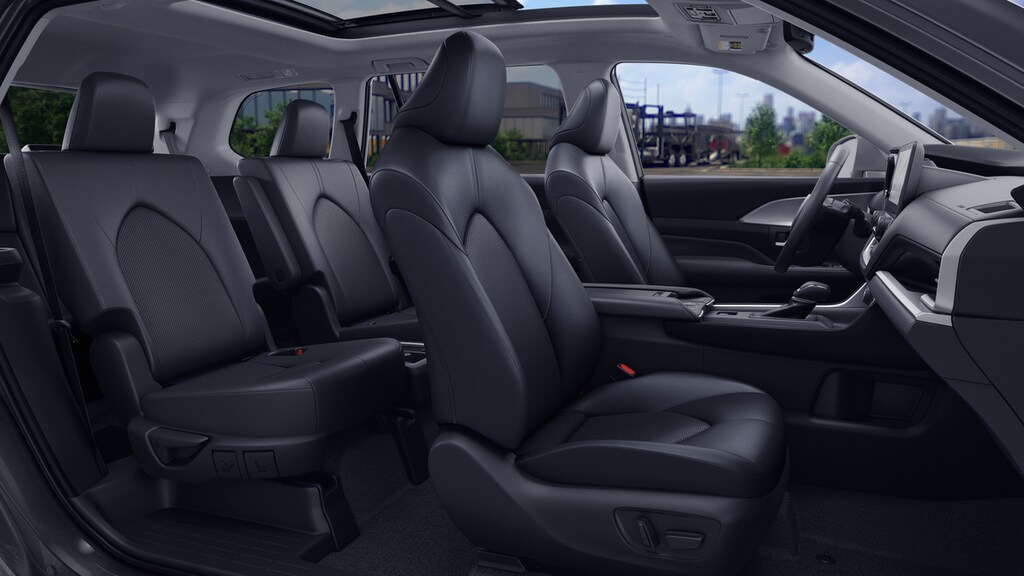 • 7-passenger seating with second-row fold-down captain's chairs and fold-down inboard armrests, adjustable headrests and two cup holders mounted on the floor; and 60/40 split, fold-down third-row seats with sliding headrests and recline function.