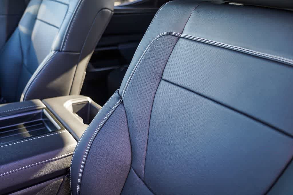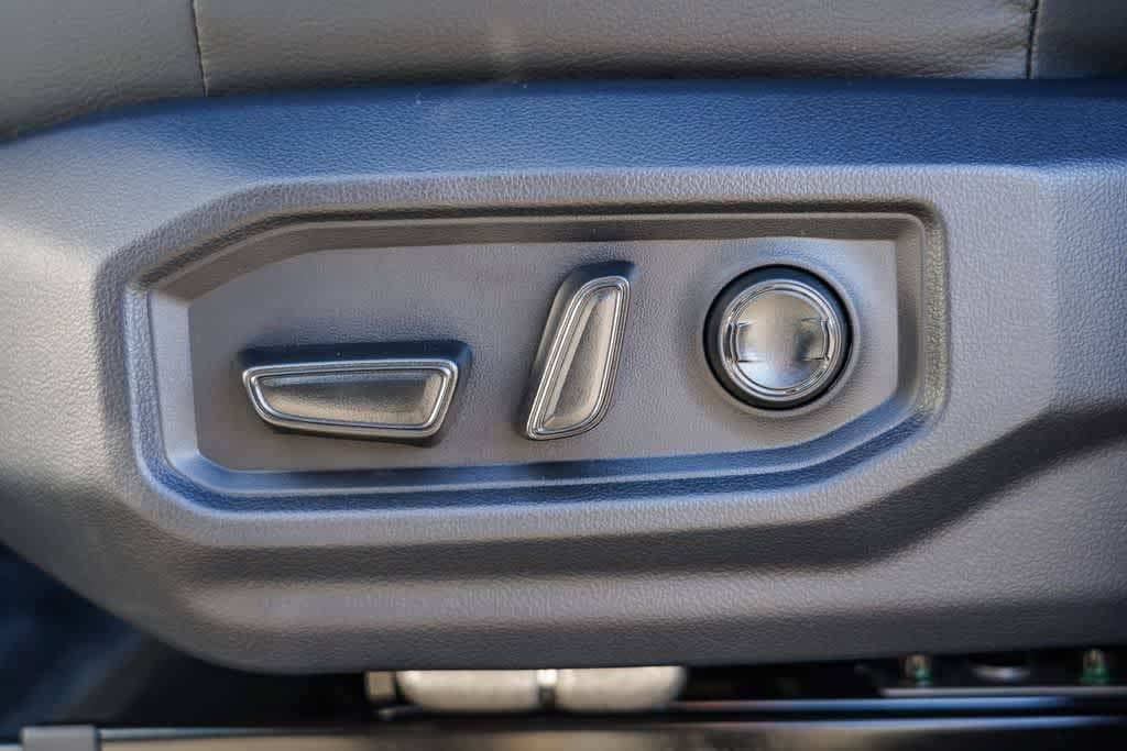 - Leather-trimmed seats with contrast stitching; 8-way power-adjustable driver and front passenger seats with power-adjustable lumbar support.