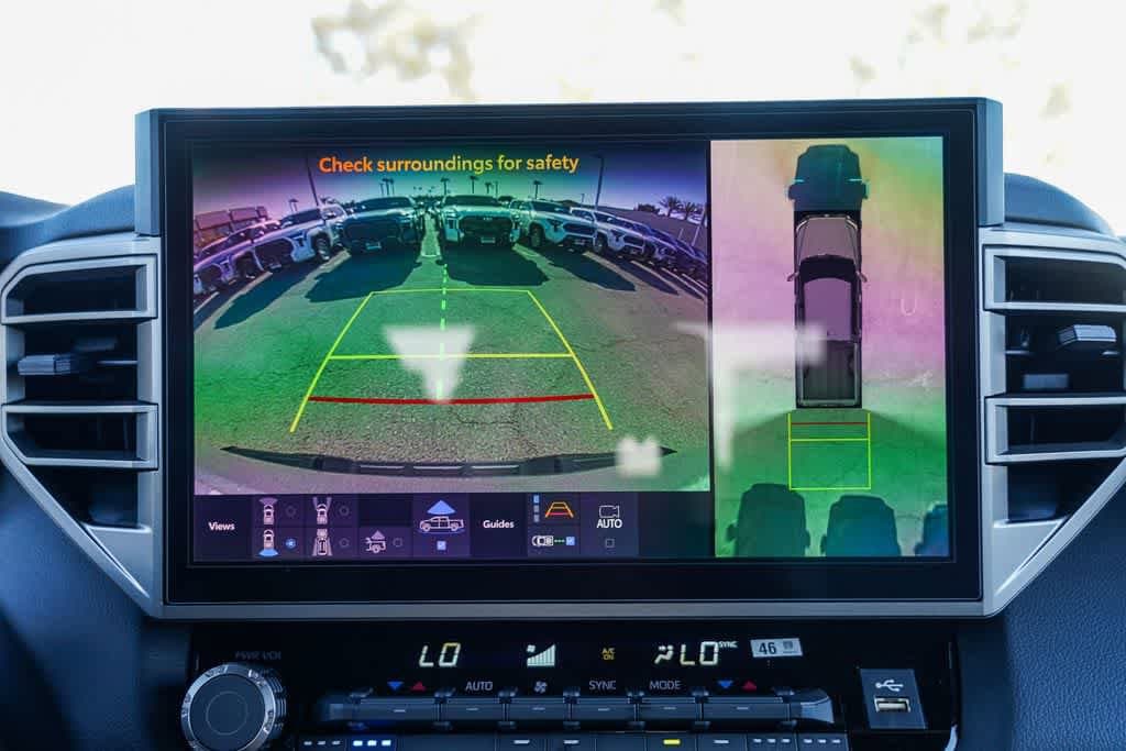 - Backup camerawith projected path.The backup camera does not provide a comprehensive view. Always look over shoulder and use outside mirrors. See. Owner's. Manual. For limitations.