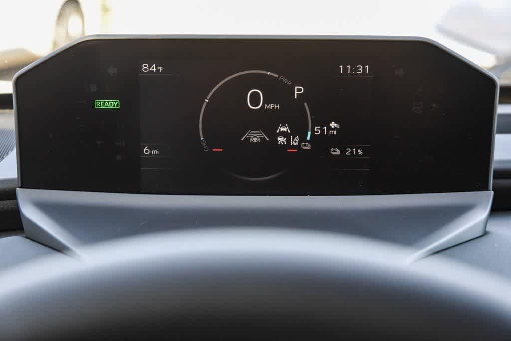 - Top-mount multi-information display (mid) with indicators and 7-in. Lcd display with speedometer, charge meter, power output meter, drive mode indicators, instrumentation and customizable settings, odometer, tripmeters, clock, outside temperature, rear passenger seatbelt indicators, fuel economy information, trip timer, charging information and settings, and warning messages.