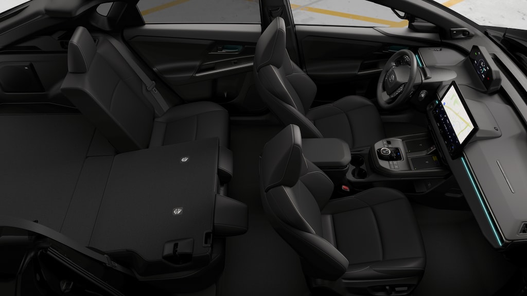 - 60/40 split, reclining fold-flat rear seats with center armrest and cup holders.