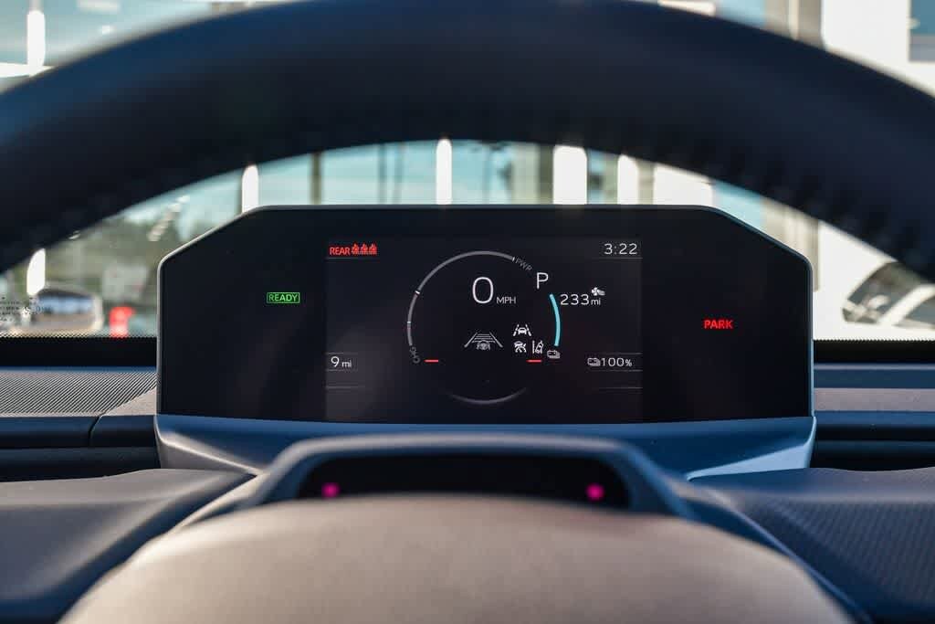 - Top-mount multi-information display (mid) with indicators and 7-in. Lcd display with speedometer, charge meter, power output meter, drive mode indicators, instrumentation and customizable settings, odometer, tripmeters, clock, outside temperature, rear passenger seatbelt indicators, fuel economy information, trip timer, charging information and settings, and warning messages.