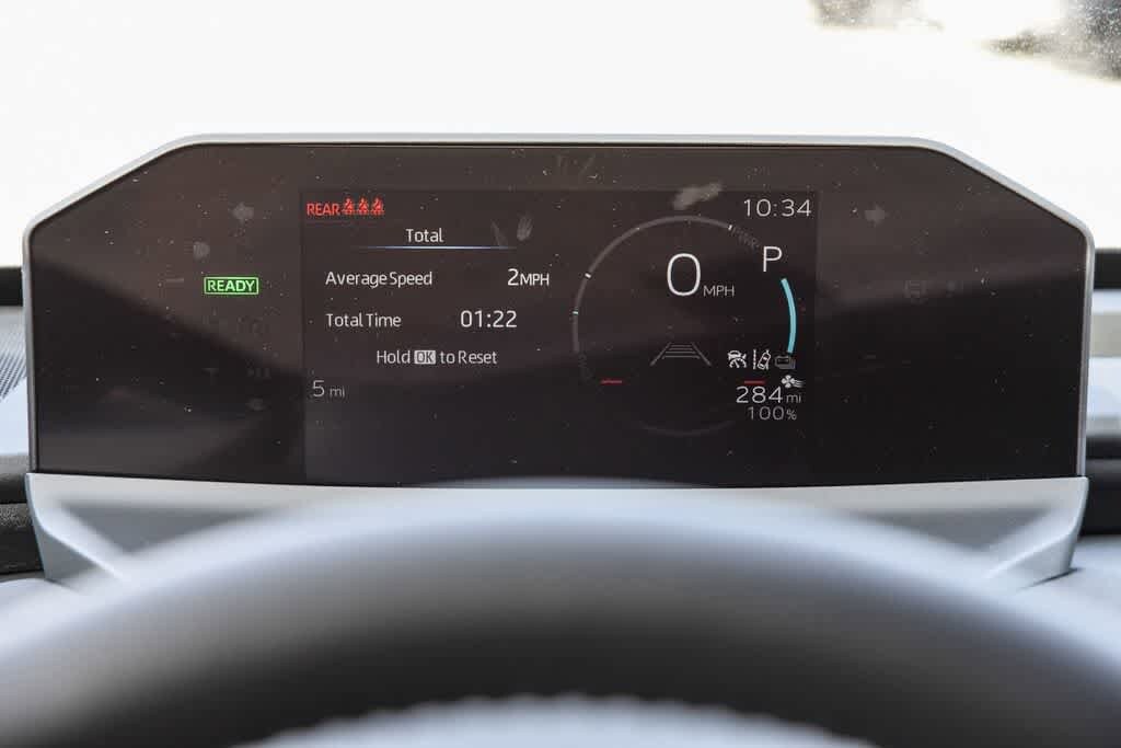 - Top-mount multi-information display (mid) with indicators and 7-in. Lcd display with speedometer, charge meter, power output meter, drive mode indicators, instrumentation and customizable settings, odometer, tripmeters, clock, outside temperature, rear passenger seatbelt indicators, fuel economy information, trip timer, charging information and settings, and warning messages.