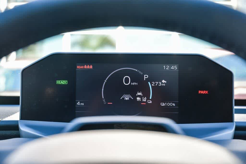 - Top-mount multi-information display (mid) with indicators and 7-in. Lcd display with speedometer, charge meter, power output meter, drive mode indicators, instrumentation and customizable settings, odometer, tripmeters, clock, outside temperature, rear passenger seatbelt indicators, fuel economy information, trip timer, charging information and settings, and warning messages.