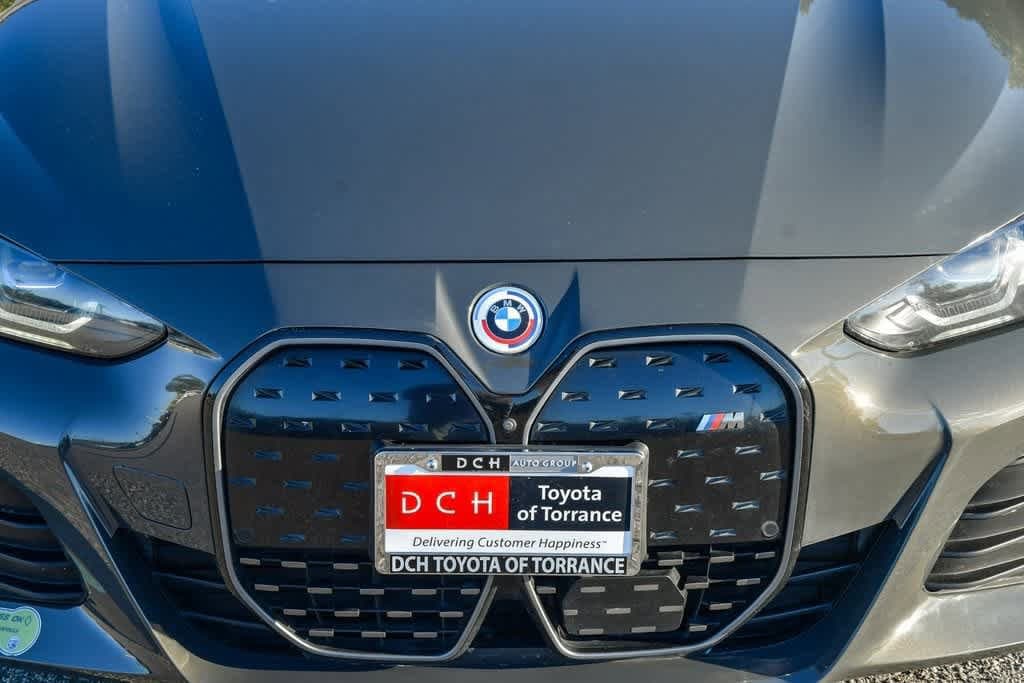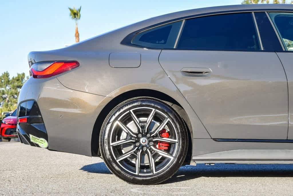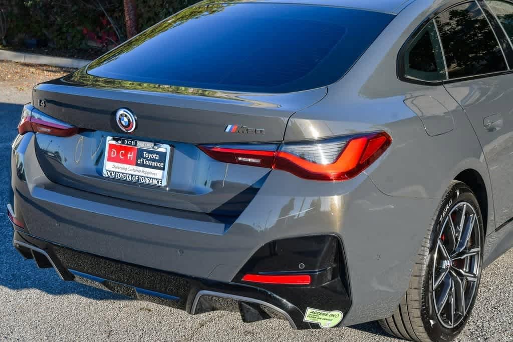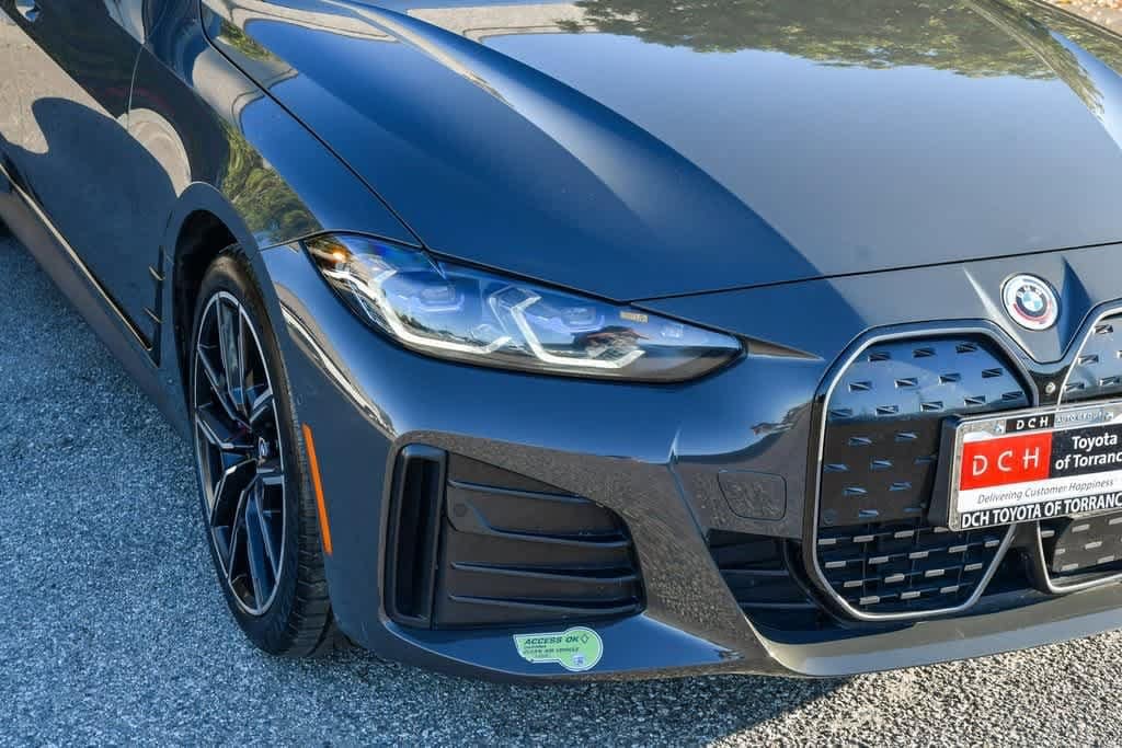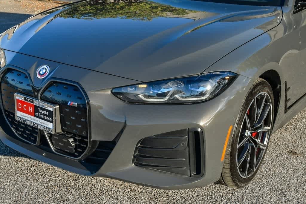 CARFAX One-Owner. Gray Metallic 2023 BMW i4 M50 AWD Single-Speed Automatic Electric Motor 10 Speakers, 4-Wheel Disc Brakes, Active Driving Assistant Pro, Active Park Distance Control, Adaptive suspension, Alloy wheels, Ambient Lighting, Apple CarPlay & Android Auto Compatibility, Auto-dimming door mirrors, Auto-dimming Rear-View mirror, Auto-leveling suspension, Automatic temperature control, BMW Assist eCall, BMW Curved Display, BMW Curved Display w/HUD, BMW M 50 Years Emblems, BMW TeleServices, Brake assist, Bumpers: body-color, Carbon Fiber Trim, Connected Package Pro, ConnectedDrive Services, Drive Recorder, Driver door bin, Driver Lumbar Support, Driver vanity mirror, Driving Assistance Professional Package, Dual front impact airbags, Dual front side impact airbags, Electronic Stability Control, Emergency communication system: BMW Assist eCall, Extended Shadowline Trim, Extended Traffic Jam Assistant, Exterior Parking Camera Rear, Four wheel independent suspension, Front anti-roll bar, Front Bucket Seats, Front Center Armrest, Front dual zone A/C, Front Ventilated Seats, Garage door transmitter, harman/kardon Surround Sound System, Heated door mirrors, Heated Front Seats, Heated Steering Wheel, Hi-Fi Sound System, Icon Adaptive LED Headlights w/Laserlight, Illuminated entry, Leather steering wheel, Lumbar Support, M Shadowline Lights, M Sport Brakes w/Red Calipers, M Sport Package Pro, Memory seat, Navigation system: BMW Maps Navigation, Occupant sensing airbag, Overhead airbag, Overhead console, Panic alarm, Parking Assistance Package, Parking Assistant Plus, Passenger door bin, Passenger vanity mirror, Perforated Sensatec Upholstery, Personal eSIM 5G, Power door mirrors, Power driver seat, Power Front Seats, Power Liftgate, Power moonroof, Power passenger seat, Premium Package, Radio data system, Radio: FM Audio System, Rain sensing wipers, Rear air conditioning, Rear anti-roll bar, Rear reading lights, Rear seat center armrest, Rear-View Camera, Remote keyless entry, Shadowline Package, SiriusXM Satellite Radio w/1 Year Subscription, Speed-sensing steering, Speed-Sensitive Wipers, Split folding rear seat, Spoiler, Sport Seats, Sport steering wheel, Steering wheel mounted audio controls, Surround View w/3D View, Telescoping steering wheel, Tilt steering wheel, Turn signal indicator mirrors, Wheels: 19 x 8.5 Fr 19 x 9.0 Rr M Double Spoke, Wireless Device Charging.