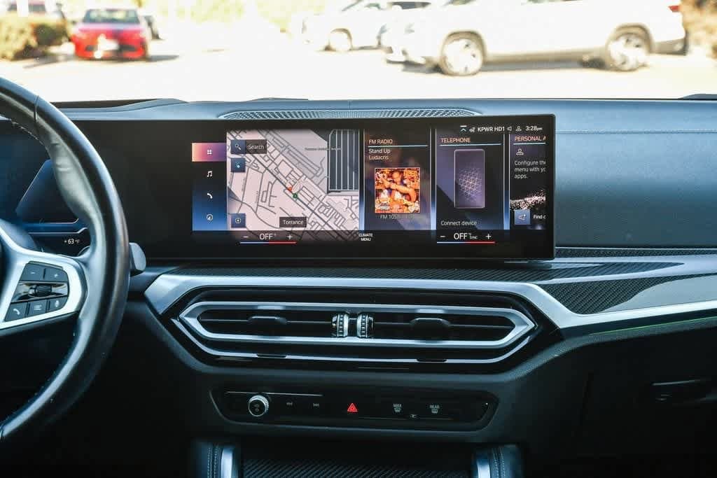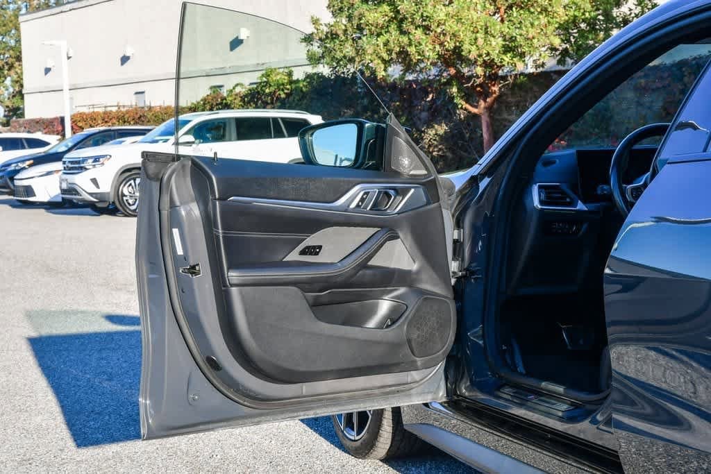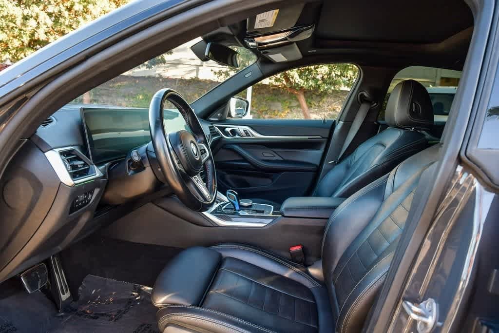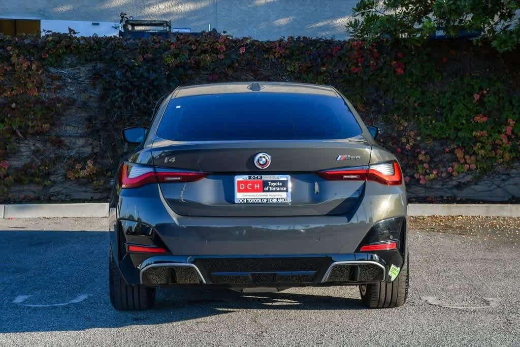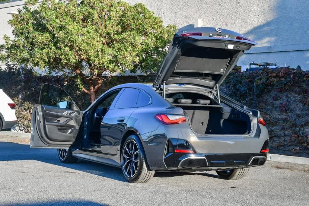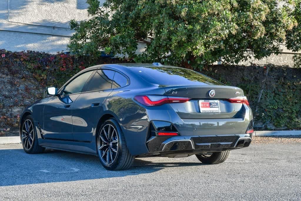 CARFAX One-Owner. Gray Metallic 2023 BMW i4 M50 AWD Single-Speed Automatic Electric Motor 10 Speakers, 4-Wheel Disc Brakes, Active Driving Assistant Pro, Active Park Distance Control, Adaptive suspension, Alloy wheels, Ambient Lighting, Apple CarPlay & Android Auto Compatibility, Auto-dimming door mirrors, Auto-dimming Rear-View mirror, Auto-leveling suspension, Automatic temperature control, BMW Assist eCall, BMW Curved Display, BMW Curved Display w/HUD, BMW M 50 Years Emblems, BMW TeleServices, Brake assist, Bumpers: body-color, Carbon Fiber Trim, Connected Package Pro, ConnectedDrive Services, Drive Recorder, Driver door bin, Driver Lumbar Support, Driver vanity mirror, Driving Assistance Professional Package, Dual front impact airbags, Dual front side impact airbags, Electronic Stability Control, Emergency communication system: BMW Assist eCall, Extended Shadowline Trim, Extended Traffic Jam Assistant, Exterior Parking Camera Rear, Four wheel independent suspension, Front anti-roll bar, Front Bucket Seats, Front Center Armrest, Front dual zone A/C, Front Ventilated Seats, Garage door transmitter, harman/kardon Surround Sound System, Heated door mirrors, Heated Front Seats, Heated Steering Wheel, Hi-Fi Sound System, Icon Adaptive LED Headlights w/Laserlight, Illuminated entry, Leather steering wheel, Lumbar Support, M Shadowline Lights, M Sport Brakes w/Red Calipers, M Sport Package Pro, Memory seat, Navigation system: BMW Maps Navigation, Occupant sensing airbag, Overhead airbag, Overhead console, Panic alarm, Parking Assistance Package, Parking Assistant Plus, Passenger door bin, Passenger vanity mirror, Perforated Sensatec Upholstery, Personal eSIM 5G, Power door mirrors, Power driver seat, Power Front Seats, Power Liftgate, Power moonroof, Power passenger seat, Premium Package, Radio data system, Radio: FM Audio System, Rain sensing wipers, Rear air conditioning, Rear anti-roll bar, Rear reading lights, Rear seat center armrest, Rear-View Camera, Remote keyless entry, Shadowline Package, SiriusXM Satellite Radio w/1 Year Subscription, Speed-sensing steering, Speed-Sensitive Wipers, Split folding rear seat, Spoiler, Sport Seats, Sport steering wheel, Steering wheel mounted audio controls, Surround View w/3D View, Telescoping steering wheel, Tilt steering wheel, Turn signal indicator mirrors, Wheels: 19 x 8.5 Fr 19 x 9.0 Rr M Double Spoke, Wireless Device Charging.