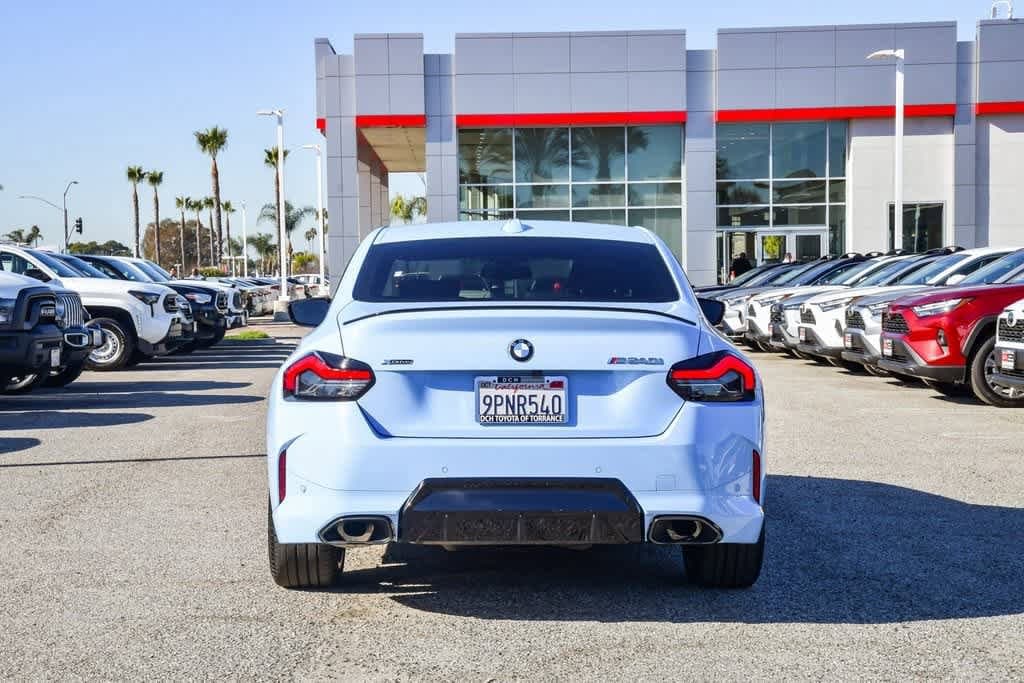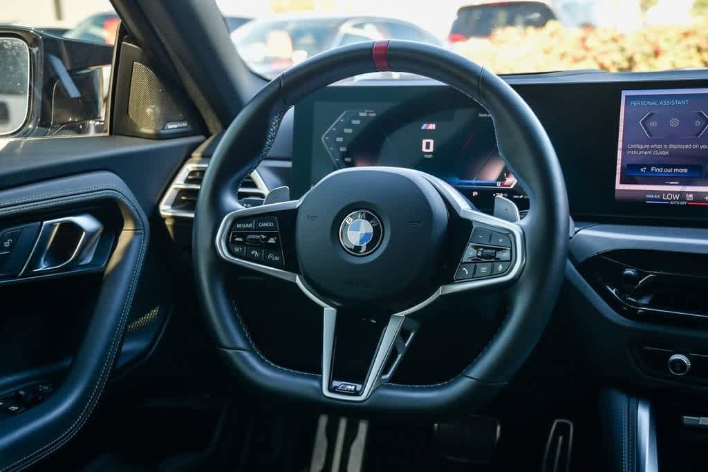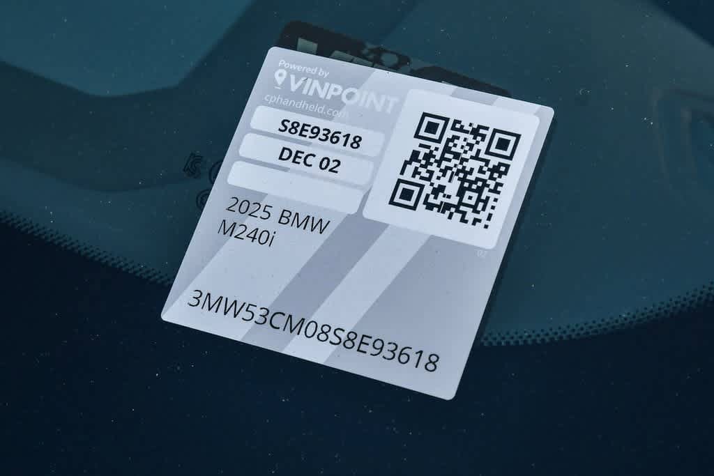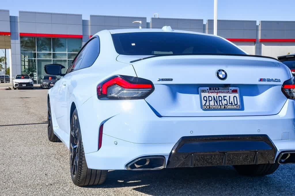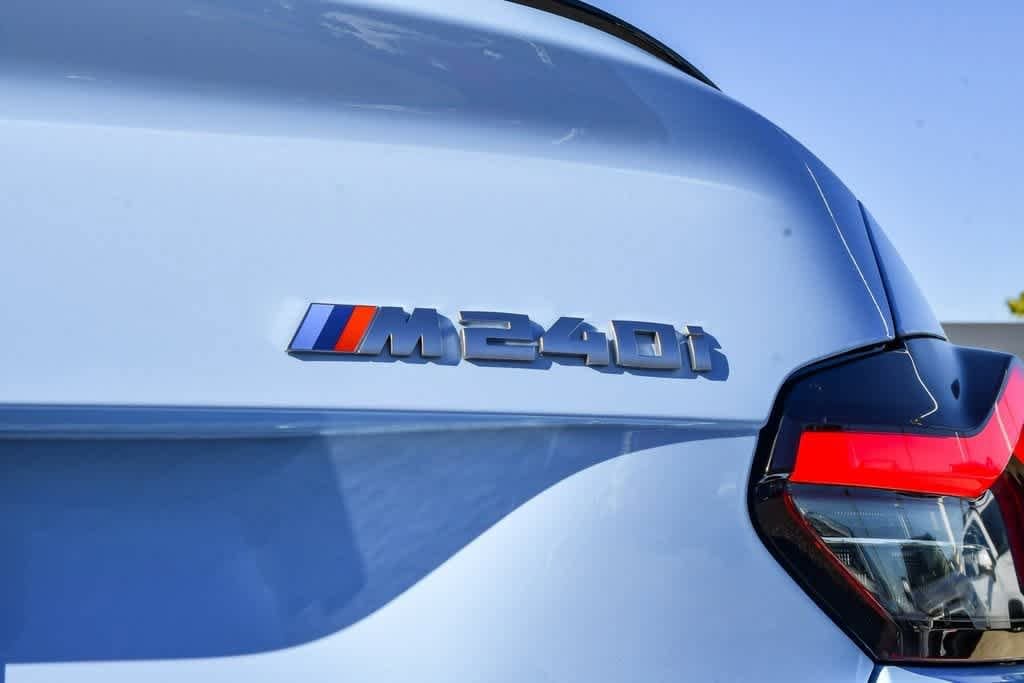 CARFAX One-Owner. Clean CARFAX. Zandvoort Blue 2025 BMW 2 Series M240i AWD 8-Speed Automatic Sport I6 10 Speakers, 4-Wheel Disc Brakes, Active Cruise Control, Adaptive Full LED Lights, Adaptive suspension, Alloy wheels, AM/FM radio: SiriusXM, Apple CarPlay & Android Auto Compatibility, Auto-dimming door mirrors, Auto-dimming Rear-View mirror, Automatic High Beams, Automatic temperature control, BMW Assist eCall, BMW TeleServices, Brake assist, Connected Package Pro, ConnectedDrive Services, Driver door bin, Driver vanity mirror, Dual front impact airbags, Dual front side impact airbags, Electronic Stability Control, Emergency communication system: BMW Assist eCall, Extended Shadowline Trim (DISC), Exterior Parking Camera Rear, Four wheel independent suspension, Front anti-roll bar, Front Bucket Seats, Front Center Armrest, Front dual zone A/C, Front reading lights, harman/kardon Surround Sound System, Heated door mirrors, Heated Front Seats, Heated front seats, Heated Steering Wheel, Hi-Fi Sound System, Illuminated entry, Illuminated M Trim, Knee airbag, Leather Shift Knob, Leather steering wheel, Live Cockpit Pro w/Head-Up Display, M Shadowline Lights, M Sport Brakes w/Red Calipers, M Sport Package Pro, M Sport Professional Package (DISC), Memory seat, Navigation, Navigation System, Occupant sensing airbag, Overhead airbag, Panic alarm, Passenger door bin, Passenger vanity mirror, Perforated Sensatec Upholstery, Personal eSIM 5G, Power door mirrors, Power driver seat, Power Front Seats, Power moonroof, Power passenger seat, Premium Package, Radio data system, Radio: AM/FM Audio System, Rain sensing wipers, Rear air conditioning, Rear anti-roll bar, Remote keyless entry, Security system, SiriusXM w/360L & 1 Yr Platinum Plan Subscription, Speed-sensing steering, Speed-Sensitive Wipers, Split folding rear seat, Spoiler, Sport Seats, Sport steering wheel, Steering wheel mounted audio controls, Telescoping steering wheel, Turn signal indicator mirrors, Universal Garage-Door Opener, Wheels: 19 x 8 M Dual-Spoke Bicolor Black, Widescreen Display.