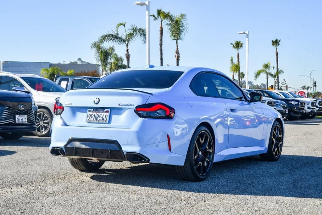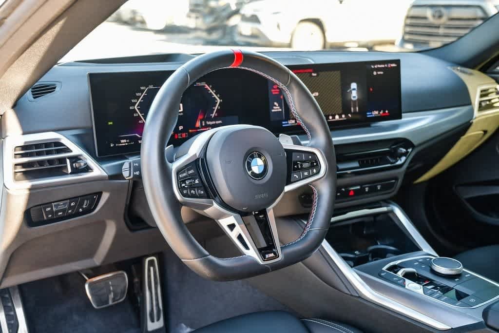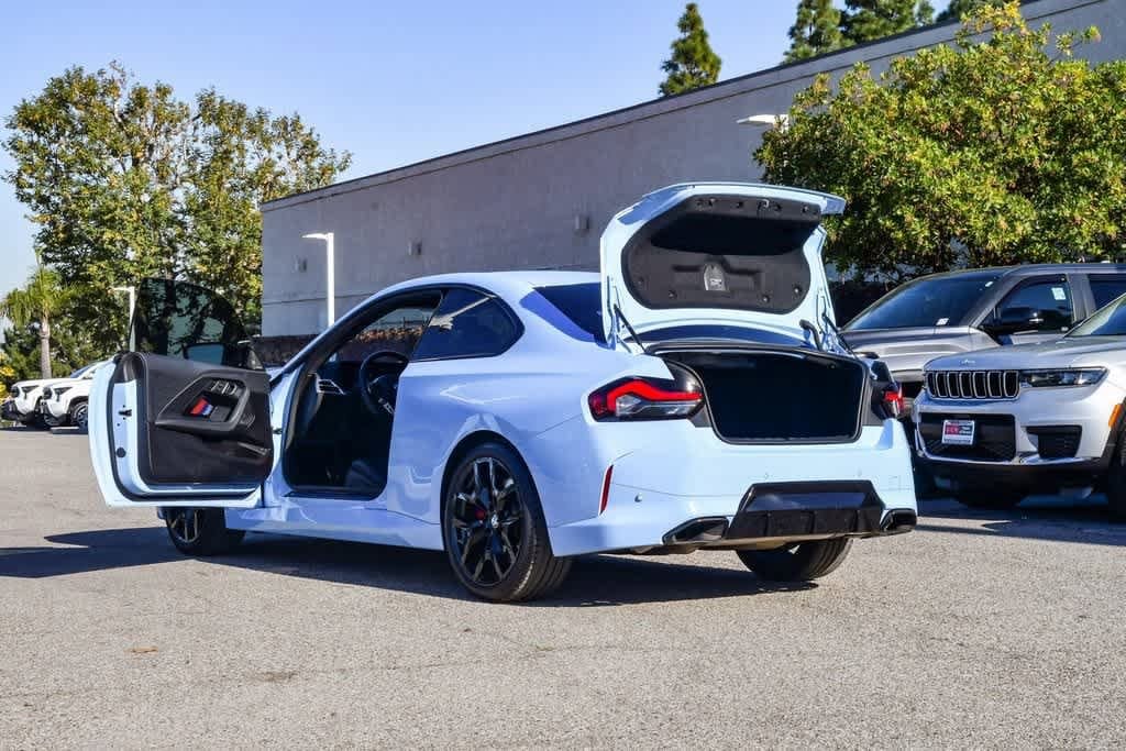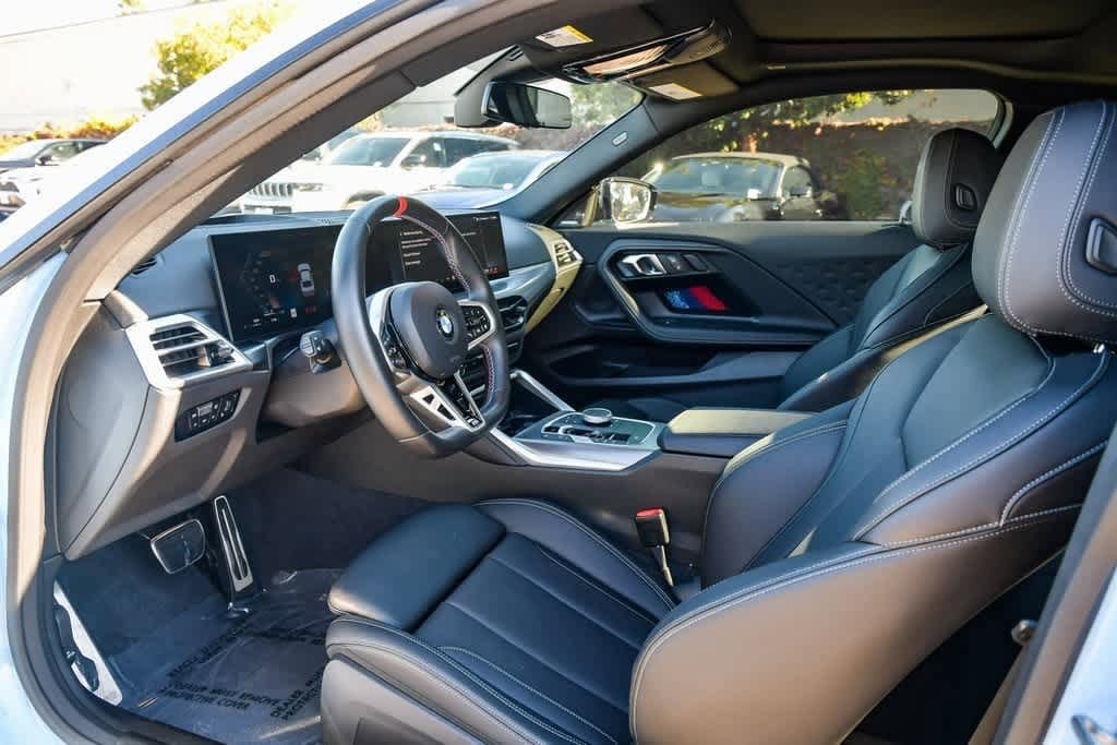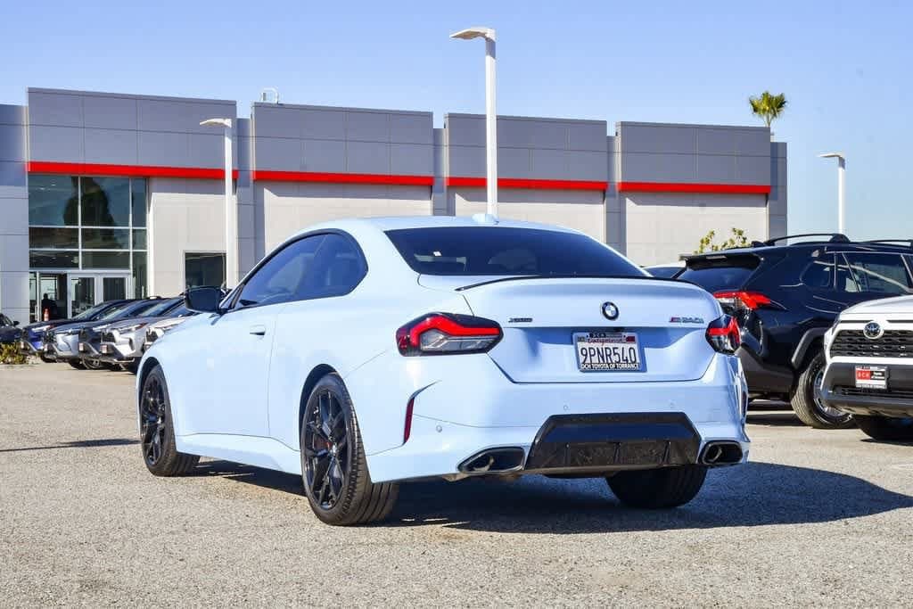 CARFAX One-Owner. Clean CARFAX. Zandvoort Blue 2025 BMW 2 Series M240i AWD 8-Speed Automatic Sport I6 10 Speakers, 4-Wheel Disc Brakes, Active Cruise Control, Adaptive Full LED Lights, Adaptive suspension, Alloy wheels, AM/FM radio: SiriusXM, Apple CarPlay & Android Auto Compatibility, Auto-dimming door mirrors, Auto-dimming Rear-View mirror, Automatic High Beams, Automatic temperature control, BMW Assist eCall, BMW TeleServices, Brake assist, Connected Package Pro, ConnectedDrive Services, Driver door bin, Driver vanity mirror, Dual front impact airbags, Dual front side impact airbags, Electronic Stability Control, Emergency communication system: BMW Assist eCall, Extended Shadowline Trim (DISC), Exterior Parking Camera Rear, Four wheel independent suspension, Front anti-roll bar, Front Bucket Seats, Front Center Armrest, Front dual zone A/C, Front reading lights, harman/kardon Surround Sound System, Heated door mirrors, Heated Front Seats, Heated front seats, Heated Steering Wheel, Hi-Fi Sound System, Illuminated entry, Illuminated M Trim, Knee airbag, Leather Shift Knob, Leather steering wheel, Live Cockpit Pro w/Head-Up Display, M Shadowline Lights, M Sport Brakes w/Red Calipers, M Sport Package Pro, M Sport Professional Package (DISC), Memory seat, Navigation, Navigation System, Occupant sensing airbag, Overhead airbag, Panic alarm, Passenger door bin, Passenger vanity mirror, Perforated Sensatec Upholstery, Personal eSIM 5G, Power door mirrors, Power driver seat, Power Front Seats, Power moonroof, Power passenger seat, Premium Package, Radio data system, Radio: AM/FM Audio System, Rain sensing wipers, Rear air conditioning, Rear anti-roll bar, Remote keyless entry, Security system, SiriusXM w/360L & 1 Yr Platinum Plan Subscription, Speed-sensing steering, Speed-Sensitive Wipers, Split folding rear seat, Spoiler, Sport Seats, Sport steering wheel, Steering wheel mounted audio controls, Telescoping steering wheel, Turn signal indicator mirrors, Universal Garage-Door Opener, Wheels: 19 x 8 M Dual-Spoke Bicolor Black, Widescreen Display.