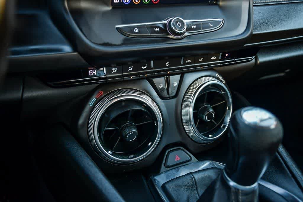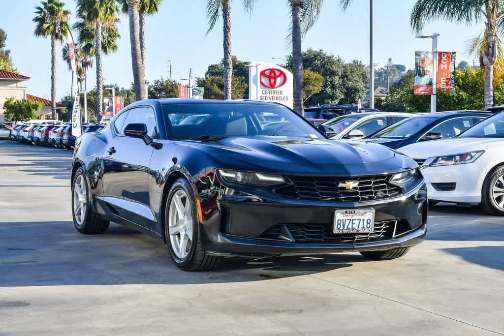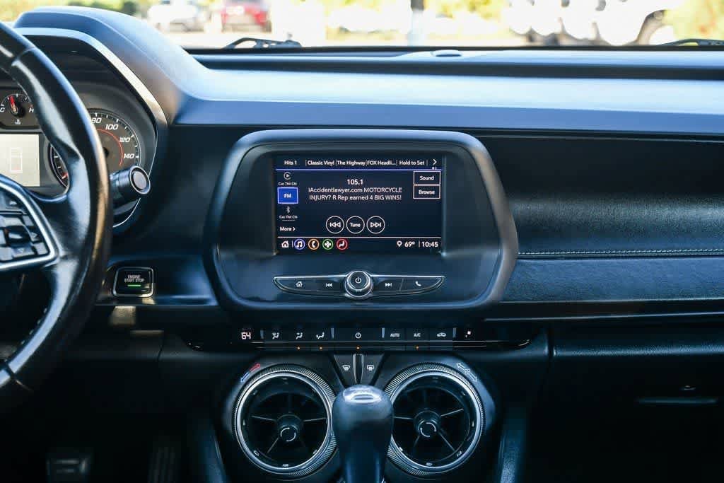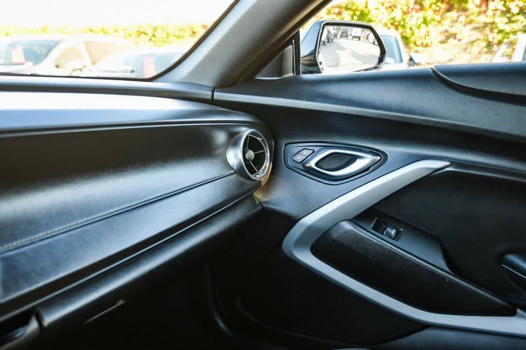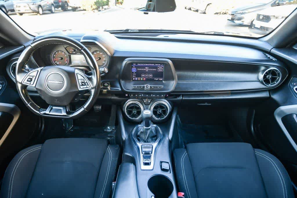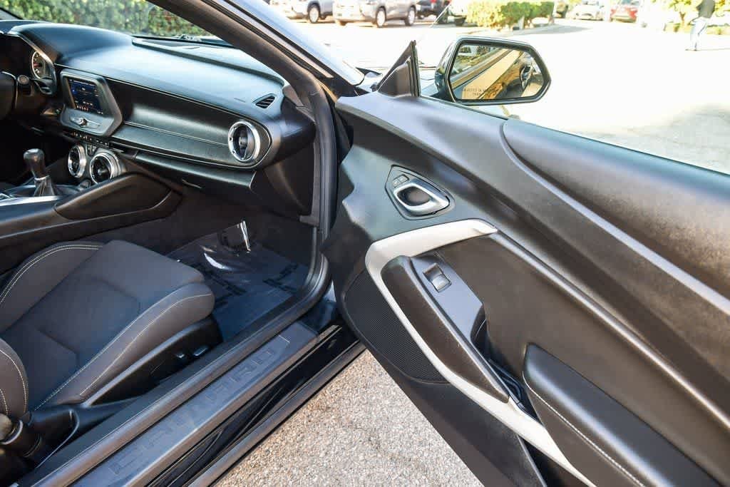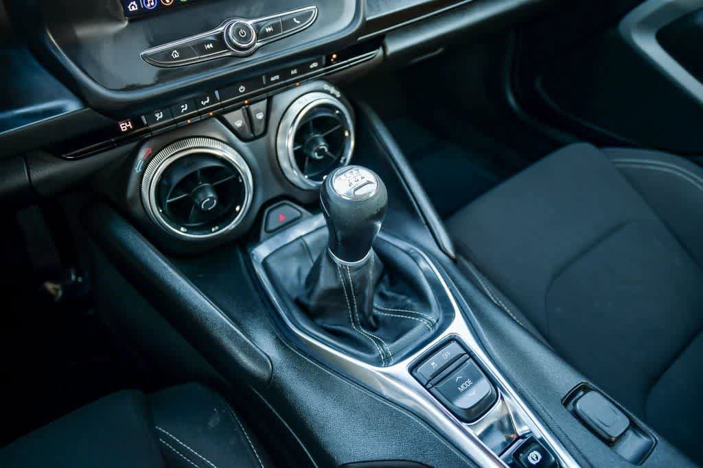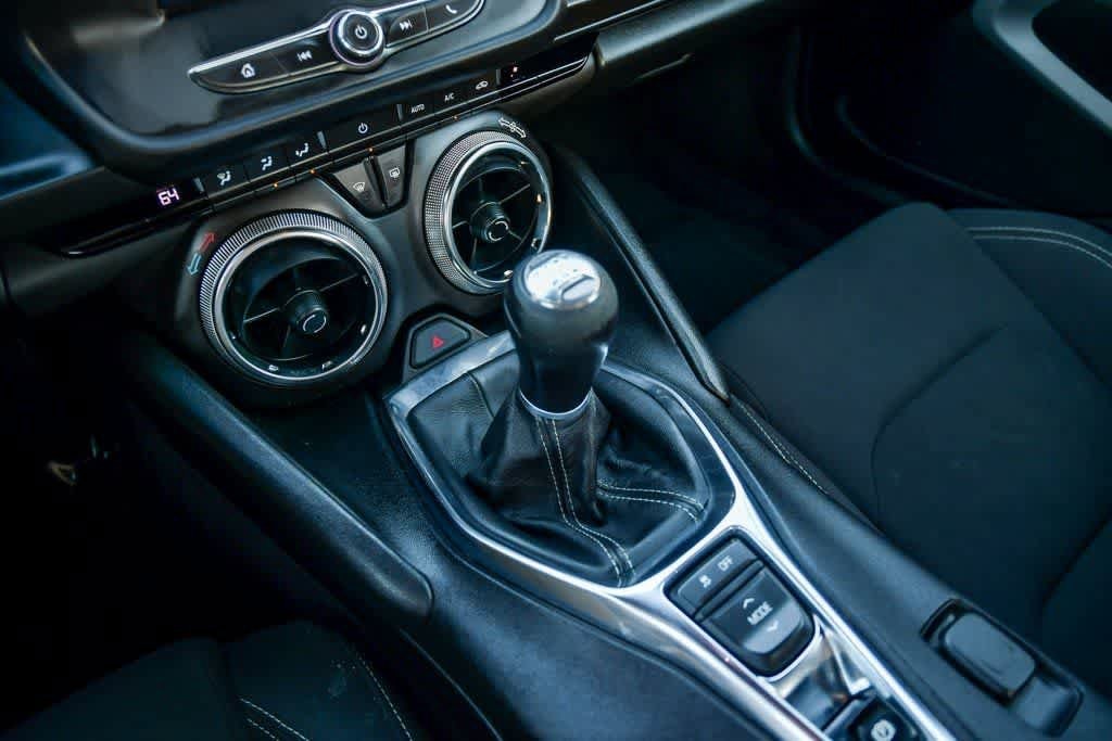CARFAX One-Owner. Black 2021 Chevrolet Camaro 1LT RWD 6-Speed Manual 2.0L Turbocharged 18 Silver-Painted Aluminum Wheels, 4-Wheel Disc Brakes, 6 Speakers, 6-Speaker Audio System Feature, 6-Way Power Front Passenger Seat Adjuster, 8-Way Power Driver Seat Adjuster, ABS brakes, All-Weather Floor Mats, Alloy wheels, AM/FM radio: SiriusXM, Apple CarPlay/Android Auto, Bluetoothî For Phone, Brake assist, Bumpers: body-color, Driver vanity mirror, Dual front impact airbags, Dual front side impact airbags, Electronic Stability Control, Exterior Parking Camera Rear, Four wheel independent suspension, Front anti-roll bar, Front Bucket Seats, Front Center Armrest, Front Sport Bucket Seats, Fully automatic headlights, Illuminated entry, Knee airbag, Leather Shift Knob, Occupant sensing airbag, Overhead airbag, Panic alarm, Passenger door bin, Passenger vanity mirror, Power door mirrors, Power driver seat, Power passenger seat, Preferred Equipment Group 1LT, Premium audio system: Chevrolet Infotainment System, Radio: Chevrolet Infotainment 3 System, Rear anti-roll bar, Remote keyless entry, Security system, SiriusXM Radio, Speed control, Speed-sensing steering, Steering wheel mounted audio controls, Telescoping steering wheel, Tilt steering wheel, Tire Inflation Kit.