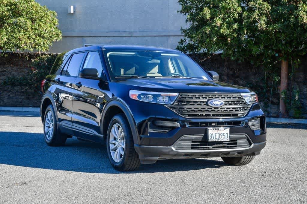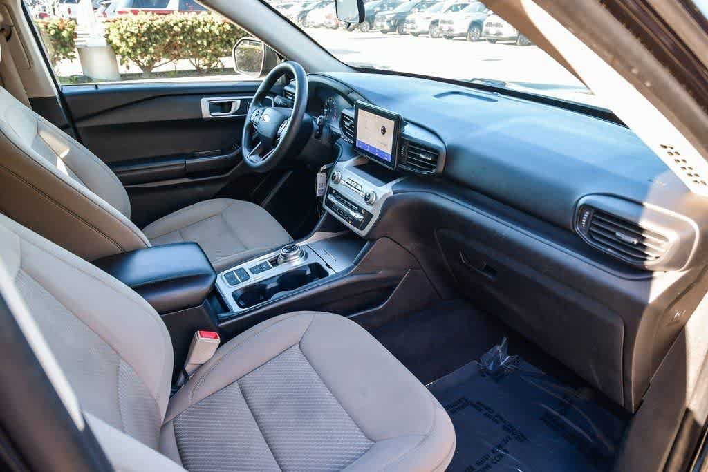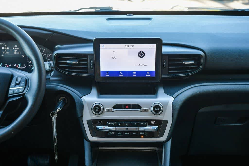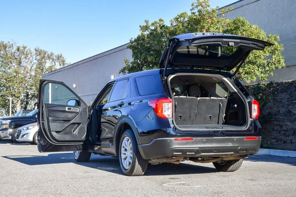 Agate Black Metallic 2021 Ford Explorer RWD 10-Speed Automatic 2.3L EcoBoost I-4 18 Painted Aluminum Wheels, 3.58 Non-Limited-Slip Rear Axle Ratio, 3rd row seats: bench, 4-Wheel Disc Brakes, 6 Speakers, Alloy wheels, AM/FM radio: SiriusXM, Automatic temperature control, Brake assist, Bumpers: body-color, Cloth Captains Chairs, Driver door bin, Driver vanity mirror, Dual front impact airbags, Dual front side impact airbags, Electronic Stability Control, Emergency communication system: SYNC 3 911 Assist, Equipment Group 100A, Exterior Parking Camera Rear, FordPass Connect, Four wheel independent suspension, Front anti-roll bar, Front Bucket Seats, Front Center Armrest, Front dual zone A/C, Illuminated entry, Knee airbag, Occupant sensing airbag, Overhead airbag, Overhead console, Panic alarm, Passenger door bin, Passenger vanity mirror, Power door mirrors, Power driver seat, Power Liftgate, Rear air conditioning, Rear anti-roll bar, Rear reading lights, Remote keyless entry, Speed control, Speed-sensing steering, Speed-Sensitive Wipers, Split folding rear seat, Spoiler, Steering wheel mounted audio controls, SYNC 3 Communications & Entertainment System, SYNC 3/Apple CarPlay/Android Auto, Telescoping steering wheel, Tilt steering wheel.