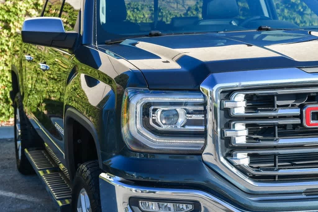 Dark Slate Metallic 2018 GMC Sierra 1500 SLT RWD 8-Speed Automatic with Overdrive EcoTec3 6.2L V8 10-Way Power Drivers Seat Adjuster, 110-Volt AC Power Outlet, 150 Amp Alternator, 1st & 2nd Row Color-Keyed Carpeted Floor Mats, 20 x 9 Chrome Clad Aluminum Wheels, 4-Wheel Disc Brakes, 4.2 Diagonal Color Display Driver Info Center, 40/20/40 Front Split Bench Seat, 6-Speaker Audio System, 6 Rectangular Chromed Tubular Assist Steps, Adjustable pedals, Auto-Dimming Inside Rear-View Mirror, Auto-dimming Rear-View mirror, Auxiliary External Transmission Oil Cooler, Bose Speaker System, Brake assist, Bumpers: chrome, Chrome Bodyside Moldings, Chrome Door Handles, Chrome Mirror Caps, Color-Keyed Carpeting, Deep-Tinted Glass, Driver & Front Passenger Illuminated Vanity Mirrors, Driver vanity mirror, Dual front impact airbags, Dual front side impact airbags, Dual-Zone Automatic Climate Control, Electric Rear-Window Defogger, Electronic Stability Control, Enhanced Driver Alert Package, Exterior Parking Camera Rear, EZ Lift & Lower Tailgate, Floor Mounted Console, Forward Collision Alert, Front anti-roll bar, Front Center Armrest w/Storage, Front Full Feature Power Reclining Bucket Seats, Front wheel independent suspension, Garage door transmitter, GMC 4G LTE, GMC Connected Access, HD Radio, Heated & Ventilated Front Bucket Seats, Heated door mirrors, Heated Driver & Front Passenger Seats, Heated front seats, Heavy Duty Suspension, Heavy-Duty Rear Locking Differential, High-Intensity Discharge Headlights, High-Performance LED Headlamps, Illuminated entry, Integrated Trailer Brake Controller, IntelliBeam Automatic High Beam On/Off Headlight, Lane Keep Assist, Leather Appointed Seat Trim, Leather Wrapped Heated Steering Wheel, Leather Wrapped Steering Wheel w/Cruise Controls, LED Cargo Box Lighting, LED Tailamps w/Signature, Low Speed Forward Automatic Braking, Manual Tilt/Telescoping Steering Column, Memory seat, Occupant sensing airbag, OnStar & GMC Connected Services Capable, Overhead airbag, Panic alarm, Passenger vanity mirror, Power Adjustable Pedals, Power driver seat, Power Folding & Adjustable Heated Outside Mirrors, Power passenger seat, Power Sliding Rear Window w/Defogger, Power Windows w/Driver Express Up & Down, Preferred Equipment Group 4SA, Radio: AM/FM/GMC Infotainment & Navigation, Rear 60/40 Folding Bench Seat (Folds Up), Rear seat center armrest, Rear step bumper, Rear Wheelhouse Liners, Remote Keyless Entry, Remote keyless entry, Remote Locking Tailgate, Remote Vehicle Starter System, Security system, Single Slot CD/MP3 Player, SiriusXM Satellite Radio, SLT Crew Cab Premium Plus Package, Speed control, Speed-sensing steering, Split folding rear seat, Spray-On Pickup Box Bed Liner w/GMC Logo, Steering Wheel Audio Controls, Steering wheel mounted audio controls, Telescoping steering wheel, Theft Deterrent System (Unauthorized Entry), Thin Profile LED Fog Lamps, Tilt steering wheel, Trailering Equipment, Turn signal indicator mirrors, Ultrasonic Front & Rear Park Assist, Universal Home Remote, Wireless Charging.