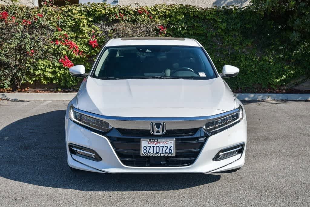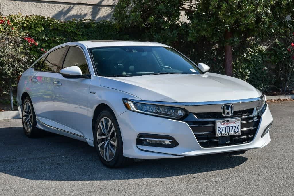 Platinum White 2019 Honda Accord Hybrid Touring FWD eCVT 2.0L 4-Cylinder DOHC 16V i-VTEC 10 Speakers, 17 Machine-Finished Alloy Wheels, 4-Wheel Disc Brakes, Adaptive suspension, Alloy wheels, AM/FM radio: SiriusXM, Apple CarPlay/Android Auto, Auto-dimming Rear-View mirror, Automatic temperature control, Blind Spot Information (BSI) System warning, Brake assist, Bumpers: body-color, Driver vanity mirror, Dual front impact airbags, Dual front side impact airbags, Electronic Stability Control, Emergency communication system: HondaLink, Exterior Parking Camera Rear, Forward collision: Collision Mitigation Braking System (CMBS) + FCW mitigation, Four wheel independent suspension, Front anti-roll bar, Front Center Armrest, Front dual zone A/C, Garage door transmitter: HomeLink, Heads-Up Display, Heated & Ventilated Front Bucket Seats, Heated door mirrors, Heated front seats, Heated rear seats, Illuminated entry, Knee airbag, Leather steering wheel, Leather-Trimmed Seats, Memory seat, Navigation System, Occupant sensing airbag, Overhead airbag, Panic alarm, Passenger vanity mirror, Power door mirrors, Power driver seat, Power moonroof, Power passenger seat, Power steering, Radio: 450-Watt AM/FM/HD Premium Audio System, Rain sensing wipers, Rear anti-roll bar, Rear seat center armrest, Remote keyless entry, Security system, Speed control, Speed-sensing steering, Speed-Sensitive Wipers, Split folding rear seat, Steering wheel mounted audio controls, Telescoping steering wheel, Turn signal indicator mirrors, Ventilated front seats.