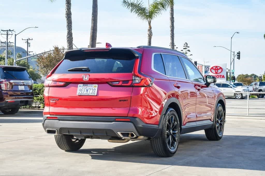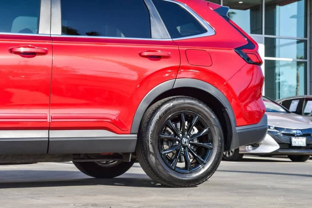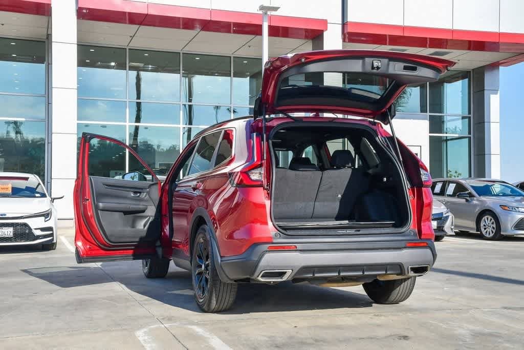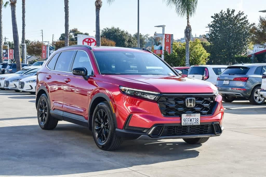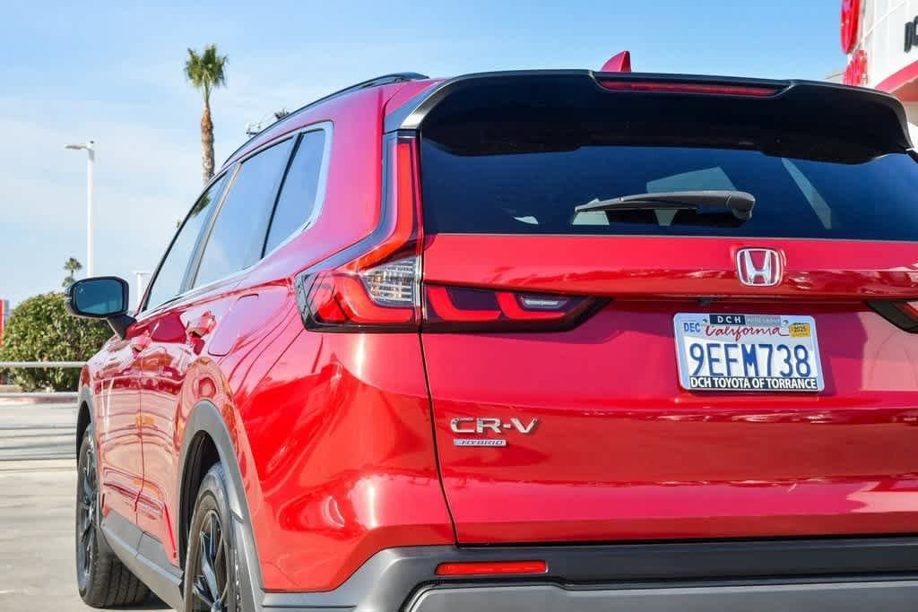 CARFAX One-Owner. Clean CARFAX. Radiant Red Metallic 2023 Honda CR-V Hybrid Sport FWD eCVT 2.0L I4 DOHC 16V 4-Wheel Disc Brakes, 6 Speakers, Adaptive Cruise Control: Adaptive Cruise Control (ACC) with Low-Speed Follow, Alloy wheels, Apple CarPlay/Android Auto, Automatic temperature control, Brake assist, Bumpers: body-color, Cloth Seat Trim, Driver door bin, Driver vanity mirror, Dual front impact airbags, Dual front side impact airbags, Electronic Stability Control, Exterior Parking Camera Rear, Four wheel independent suspension, Front anti-roll bar, Front Bucket Seats, Front Center Armrest, Front dual zone A/C, Heated door mirrors, Heated Front Bucket Seats, Heated front seats, Illuminated entry, Knee airbag, Leather Shift Knob, Leather steering wheel, Occupant sensing airbag, Overhead airbag, Overhead console, Panic alarm, Passenger door bin, Passenger vanity mirror, Power door mirrors, Power driver seat, Power moonroof, Radio data system, Radio: 240-Watt AM/FM Audio System, Rear anti-roll bar, Rear reading lights, Rear seat center armrest, Rear side impact airbag, Rear window wiper, Remote keyless entry, Security system, Speed control, Speed-sensing steering, Speed-Sensitive Wipers, Split folding rear seat, Spoiler, Steering wheel mounted audio controls, Telescoping steering wheel, Tilt steering wheel, Turn signal indicator mirrors, Wheels: 18 Berlina Black Alloy.