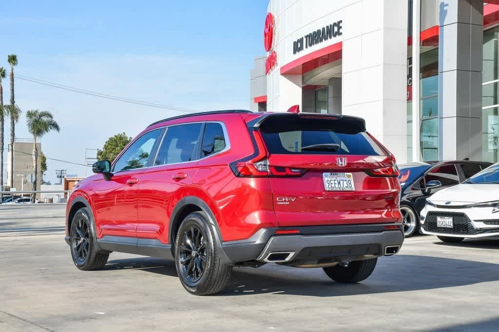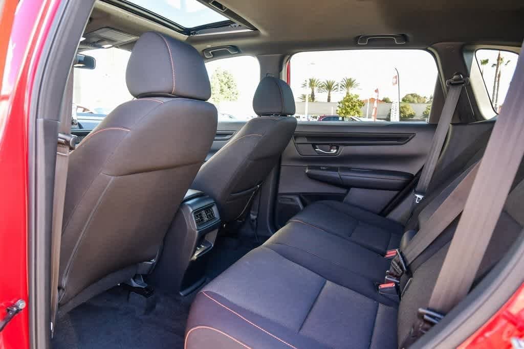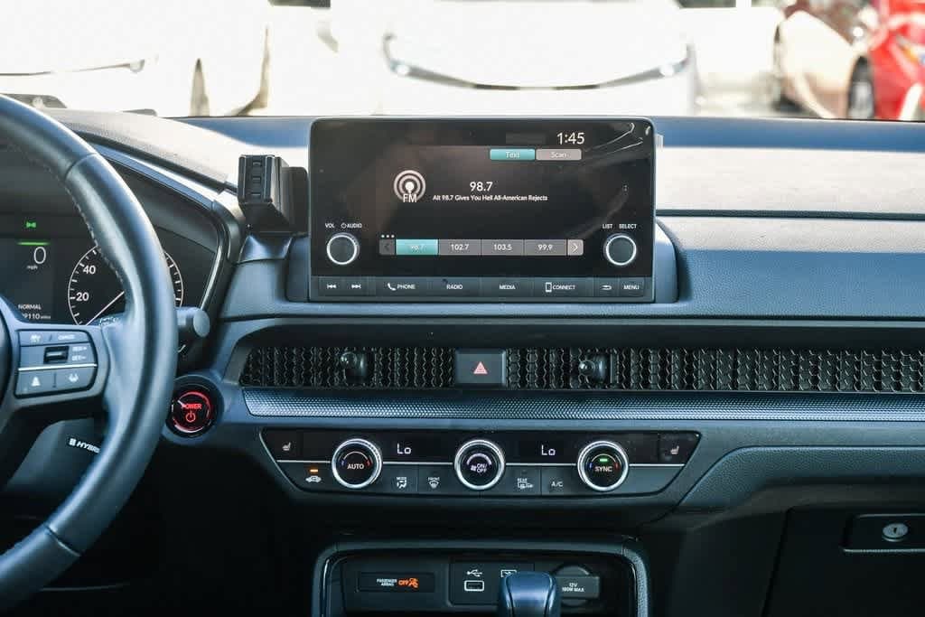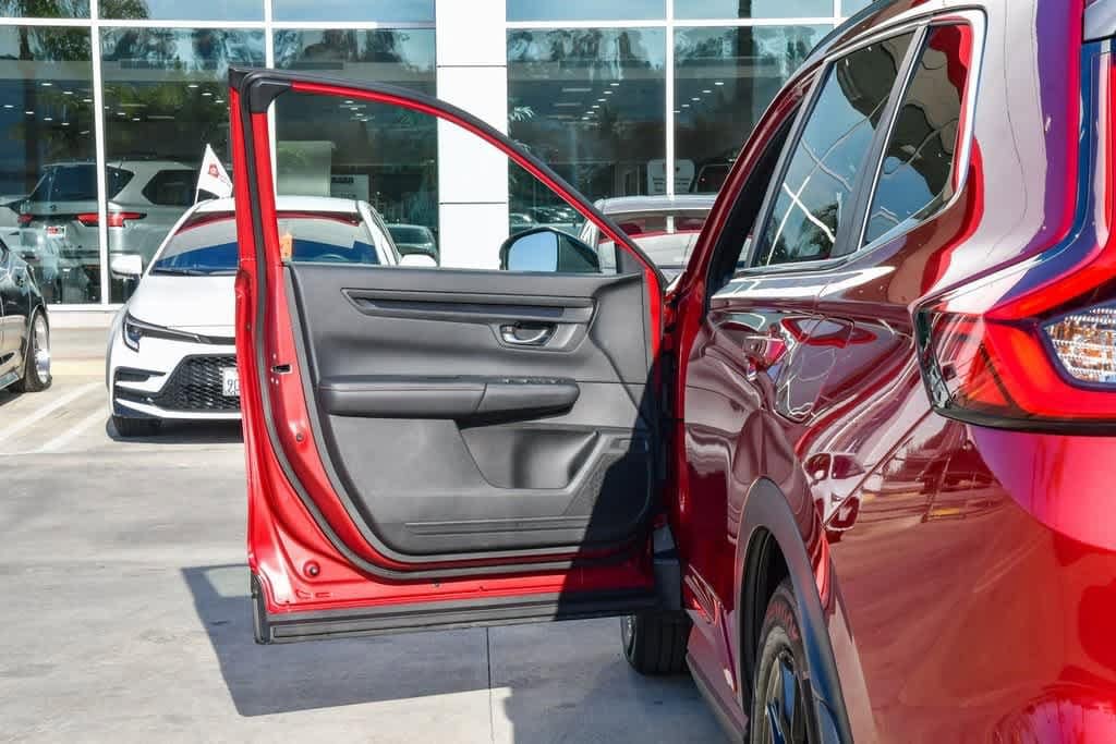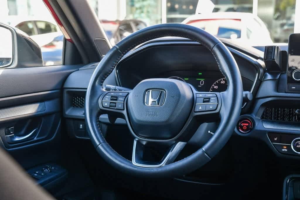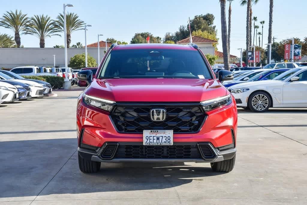 CARFAX One-Owner. Clean CARFAX. Radiant Red Metallic 2023 Honda CR-V Hybrid Sport FWD eCVT 2.0L I4 DOHC 16V 4-Wheel Disc Brakes, 6 Speakers, Adaptive Cruise Control: Adaptive Cruise Control (ACC) with Low-Speed Follow, Alloy wheels, Apple CarPlay/Android Auto, Automatic temperature control, Brake assist, Bumpers: body-color, Cloth Seat Trim, Driver door bin, Driver vanity mirror, Dual front impact airbags, Dual front side impact airbags, Electronic Stability Control, Exterior Parking Camera Rear, Four wheel independent suspension, Front anti-roll bar, Front Bucket Seats, Front Center Armrest, Front dual zone A/C, Heated door mirrors, Heated Front Bucket Seats, Heated front seats, Illuminated entry, Knee airbag, Leather Shift Knob, Leather steering wheel, Occupant sensing airbag, Overhead airbag, Overhead console, Panic alarm, Passenger door bin, Passenger vanity mirror, Power door mirrors, Power driver seat, Power moonroof, Radio data system, Radio: 240-Watt AM/FM Audio System, Rear anti-roll bar, Rear reading lights, Rear seat center armrest, Rear side impact airbag, Rear window wiper, Remote keyless entry, Security system, Speed control, Speed-sensing steering, Speed-Sensitive Wipers, Split folding rear seat, Spoiler, Steering wheel mounted audio controls, Telescoping steering wheel, Tilt steering wheel, Turn signal indicator mirrors, Wheels: 18 Berlina Black Alloy.