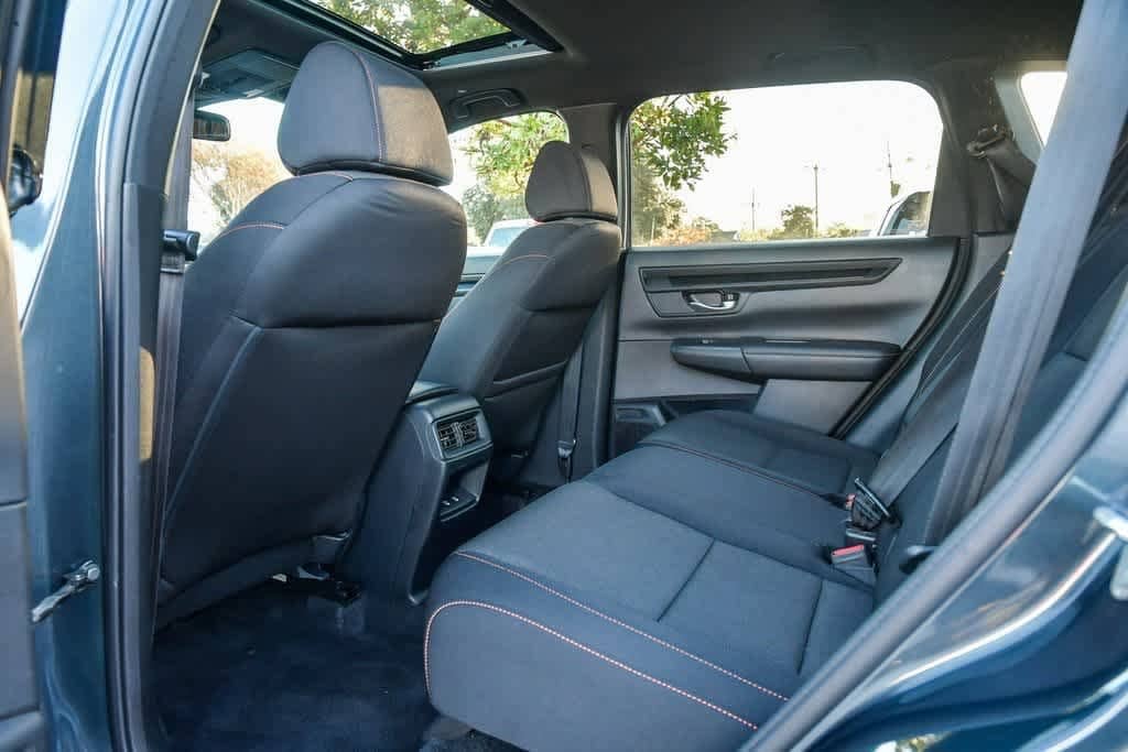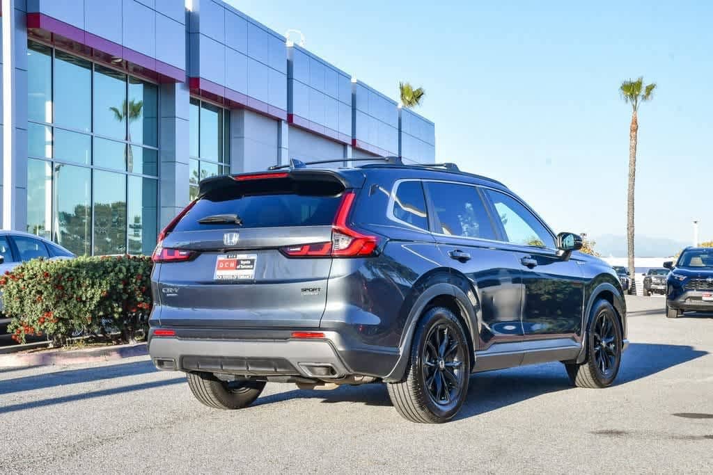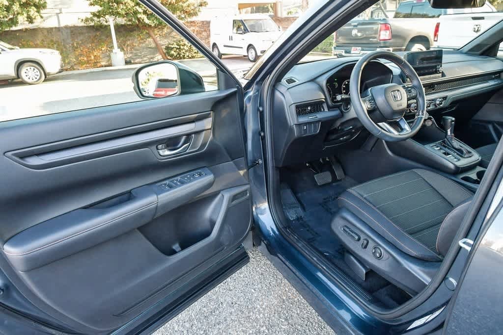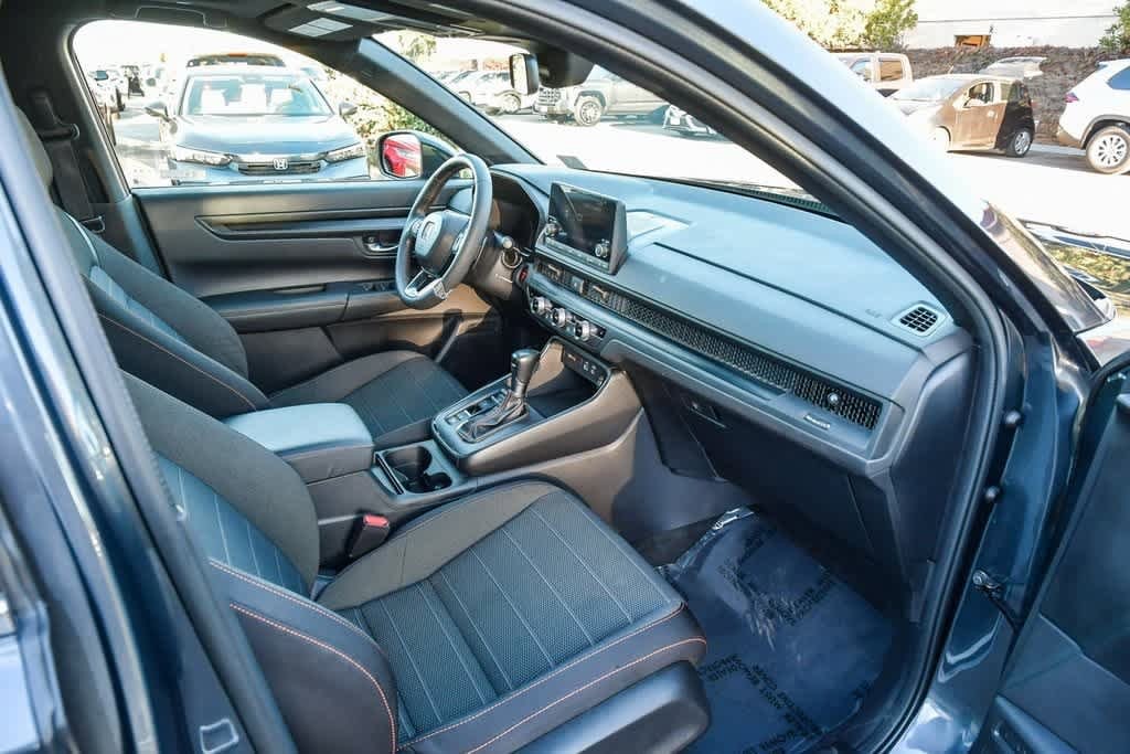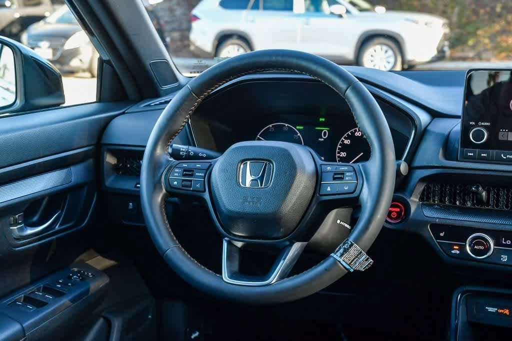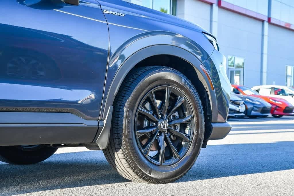 CARFAX One-Owner. Meteorite Gray Metallic 2024 Honda CR-V Hybrid Sport FWD eCVT 2.0L I4 DOHC 16V 4-Wheel Disc Brakes, 6 Speakers, Adaptive Cruise Control: Adaptive Cruise Control (ACC) with Low-Speed Follow, Alloy wheels, Apple CarPlay/Android Auto, Auto High-beam Headlights, Automatic temperature control, Blind Spot Information (BSI) System warning, Brake assist, Bumpers: body-color, Cloth Seat Trim, Delay-off headlights, Driver door bin, Driver vanity mirror, Dual front impact airbags, Dual front side impact airbags, Electronic Stability Control, Exterior Parking Camera Rear, Four wheel independent suspension, Front anti-roll bar, Front Bucket Seats, Front Center Armrest, Front dual zone A/C, Front reading lights, Heated door mirrors, Heated Front Bucket Seats, Heated front seats, Illuminated entry, Knee airbag, Leather Shift Knob, Leather steering wheel, Occupant sensing airbag, Overhead airbag, Overhead console, Panic alarm, Passenger door bin, Passenger vanity mirror, Power door mirrors, Power driver seat, Power moonroof, Radio: 240-Watt AM/FM Audio System, Rear anti-roll bar, Rear seat center armrest, Rear side impact airbag, Rear window wiper, Remote keyless entry, Security system, Speed-sensing steering, Speed-Sensitive Wipers, Split folding rear seat, Spoiler, Steering wheel mounted audio controls, Telescoping steering wheel, Tilt steering wheel, Turn signal indicator mirrors, Wheels: 18 Berlina Black Alloy.