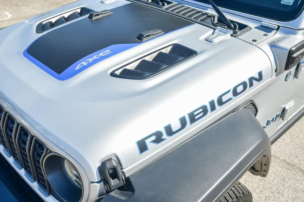 CARFAX One-Owner. Clean CARFAX. Silver Zynith Clearcoat 2024 Jeep Wrangler Rubicon 4xe 4WD 8-Speed Automatic 2.0L I4 DOHC 12.3 Touchscreen Display, 4-Wheel Disc Brakes, 4.10 Rear Axle Ratio, 4G LTE Wi-Fi Hot Spot, 8 Speakers, Alloy wheels, AM/FM radio: SiriusXM, Apple CarPlay, Apple CarPlay/Android Auto, Automatic temperature control, Black 3-Piece Hard Top, Body Color 3-Piece Hard Top, Brake assist, Compass, Connectivity - US/Canada, Driver door bin, Driver vanity mirror, Dual front impact airbags, Dual front side impact airbags, Electronic Stability Control, Emergency communication system: Jeep Connect, Freedom Panel Storage Bag, Front anti-roll bar, Front Bucket Seats, Front Center Armrest w/Storage, Front dual zone A/C, Google Android Auto, Heated door mirrors, Illuminated entry, Integrated Center Stack Radio, Integrated roll-over protection, Integrated Voice Command w/Bluetooth, No Soft Top, Occupant sensing airbag, Overhead airbag, Panic alarm, ParkView Rear Back-Up Camera, Passenger door bin, Passenger vanity mirror, Performance Suspension, Power door mirrors, Quick Order Package 29V Rubicon, Radio: Uconnect 5 w/12.3 Display, Rear anti-roll bar, Rear Window Defroster, Rear Window Wiper/Washer, Remote keyless entry, Security system, Speed control, Split folding rear seat, Steering wheel mounted audio controls, Telescoping steering wheel, Tilt steering wheel, Wheels: 17 x 7.5 Machined w/Black Pockets.