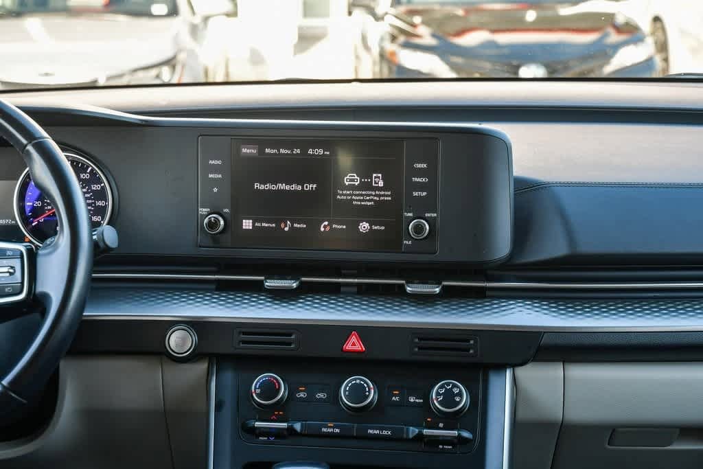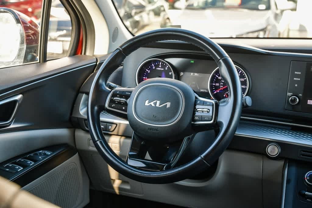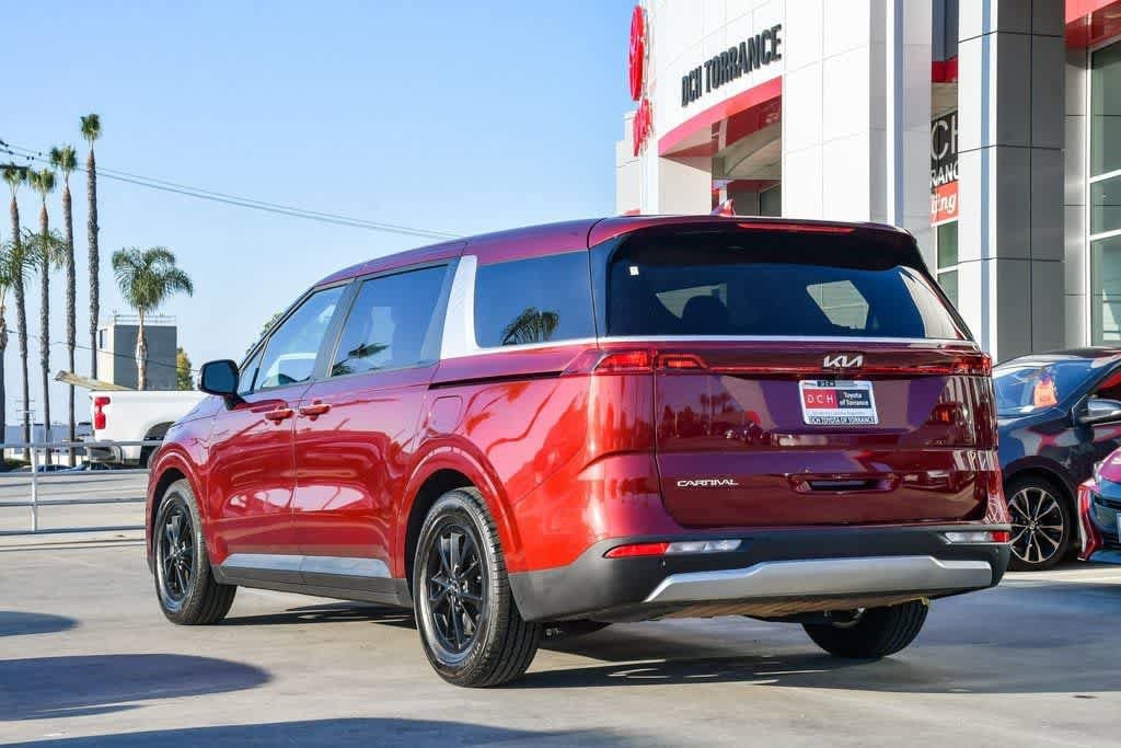 CARFAX One-Owner. Clean CARFAX. Flare Red 2024 Kia Carnival LX FWD 8-Speed Automatic V6 3rd row seats: split-bench, 4-Wheel Disc Brakes, 6 Speakers, Alloy wheels, Apple CarPlay & Android Auto, Brake assist, Bumpers: body-color, Cargo Net, Cargo Tray, Cloth Seat Trim, Driver door bin, Driver vanity mirror, Dual front impact airbags, Dual front side impact airbags, Electronic Stability Control, Four wheel independent suspension, Front anti-roll bar, Front Bucket Seats, Front Center Armrest, Front reading lights, Heated door mirrors, Illuminated entry, Knee airbag, Leather Shift Knob, Occupant sensing airbag, Outside temperature display, Overhead airbag, Overhead console, Panic alarm, Passenger door bin, Passenger vanity mirror, Power door mirrors, Radio: AM/FM Audio System, Rear air conditioning, Rear anti-roll bar, Rear window defroster, Reclining 3rd row seat, Remote keyless entry, Security system, Speed control, Speed-sensing steering, Split folding rear seat, Spoiler, Steering wheel mounted audio controls, Telescoping steering wheel, Tilt steering wheel, Turn signal indicator mirrors, Wheels: 6.5J x 17 Clear Silver Painted Alloy.