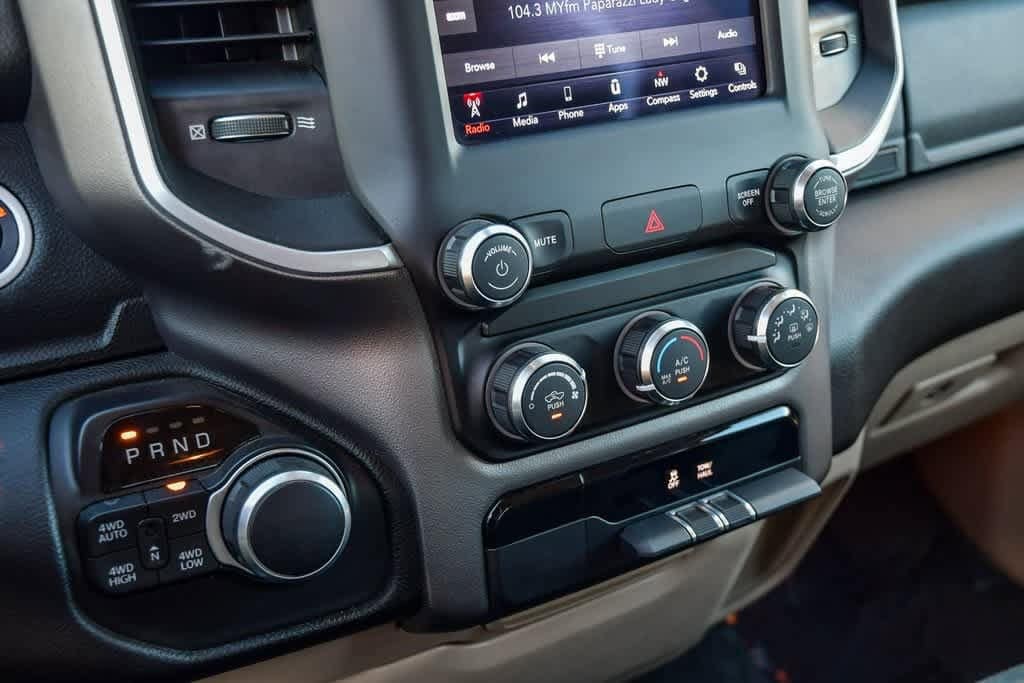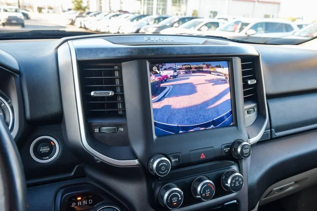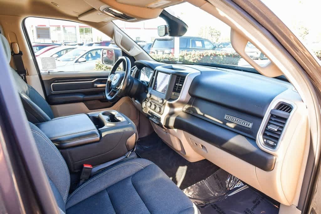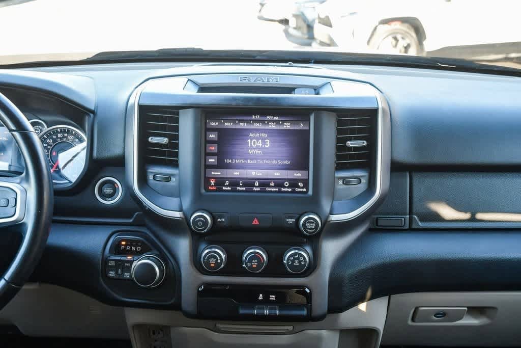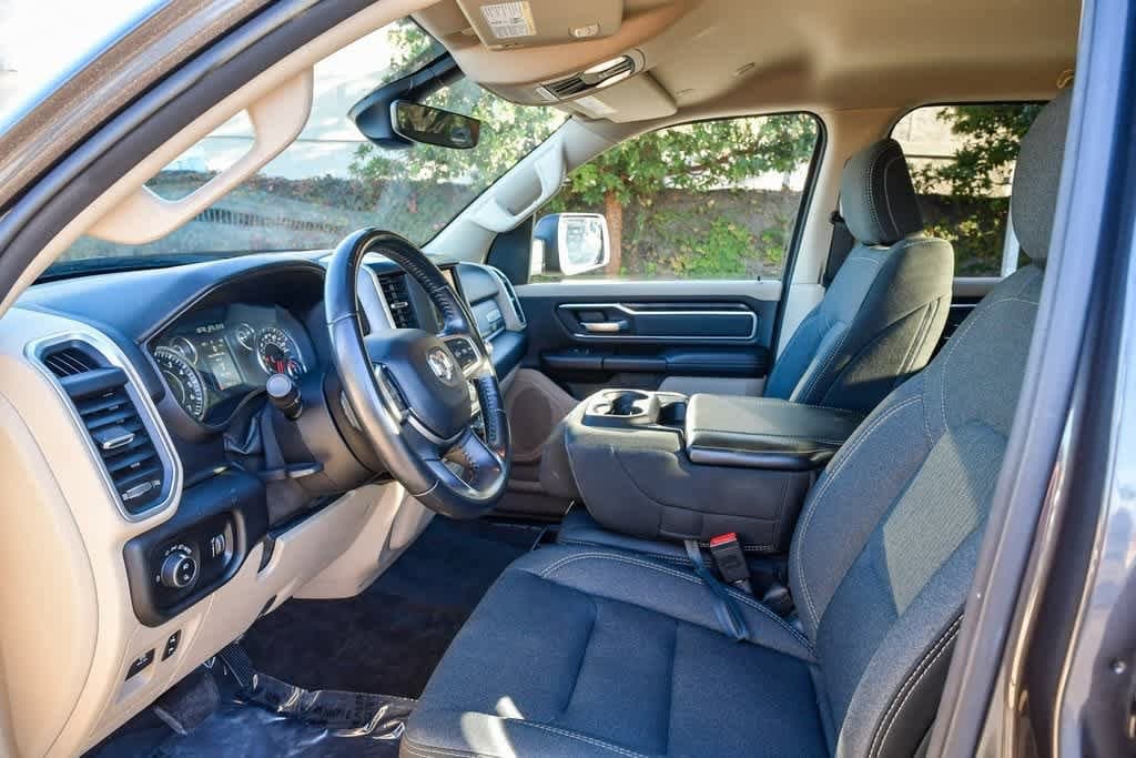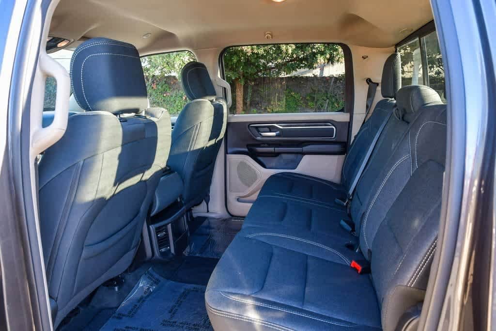 Granite Crystal Metallic Clearcoat 2020 Ram 1500 Big Horn/Lone Star 4WD 8-Speed Automatic HEMI 5.7L V8 Multi Displacement VVT 2nd Row In Floor Storage Bins, 3 Rear Seat Head Restraints, 4 Way Front Headrests, 4-Wheel Disc Brakes, 48V Belt Starter Generator, 6 Speakers, Alloy wheels, Auto-Dimming Rear-View Mirror, Big Horn IP Badge, Big Horn Level 1 Equipment Group, Black Premium Power Mirrors, Brake assist, Bumpers: chrome, Class IV Receiver Hitch, Cloth Bench Seat, Cluster 3.5 TFT Color Display, Driver door bin, Dual front impact airbags, Dual front side impact airbags, Electronic Stability Control, Foam Bottle Insert (Door Trim Panel), Front anti-roll bar, Front Center Armrest w/Storage, Front Seat Back Map Pockets, Front wheel independent suspension, Glove Box Lamp, GPS Antenna Input, Heated door mirrors, Illuminated entry, Leather steering wheel, Occupant sensing airbag, Overhead airbag, Overhead console, Panic alarm, ParkView Rear Back-Up Camera, Passenger door bin, Passenger vanity mirror, Power 4-Way Driver Lumbar Adjust, Power 8-Way Driver Seat, Power Adjustable Pedals, Power door mirrors, Radio: Uconnect 3 w/5 Display, Radio: Uconnect 4 w/8.4 Display, Rear 60/40 Folding Seat, Rear anti-roll bar, Rear Dome w/On/Off Switch Lamp, Rear Power Sliding Window, Rear seat center armrest, Rear step bumper, Rear Window Defroster, Remote keyless entry, SiriusXM Satellite Radio, Speed control, Split folding rear seat, Steering wheel mounted audio controls, Sun Visors w/Illuminated Vanity Mirrors, Telescoping steering wheel, Tilt steering wheel, Universal Garage Door Opener, Wheels: 20 x 9 Aluminum Chrome Clad.