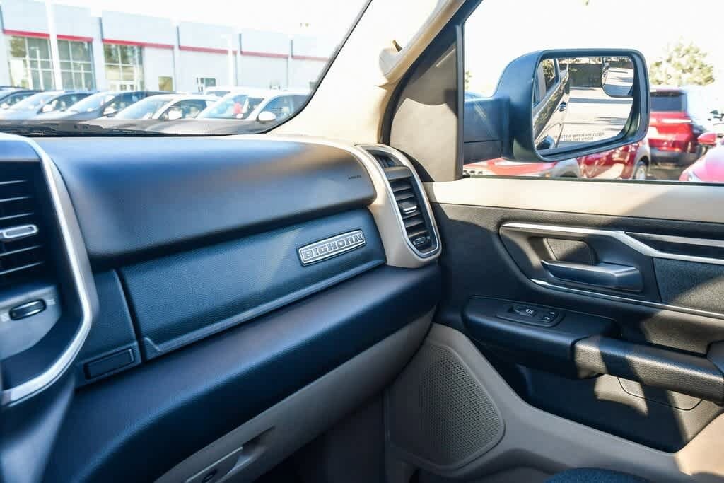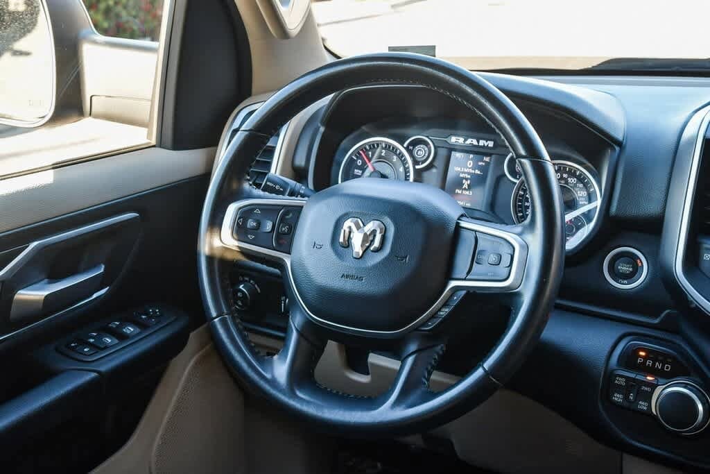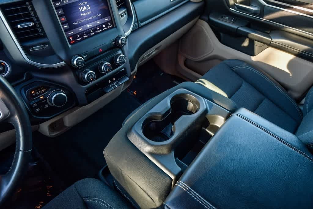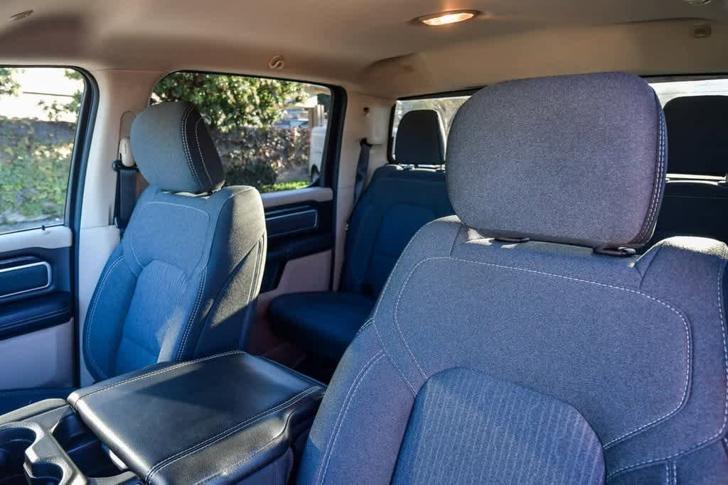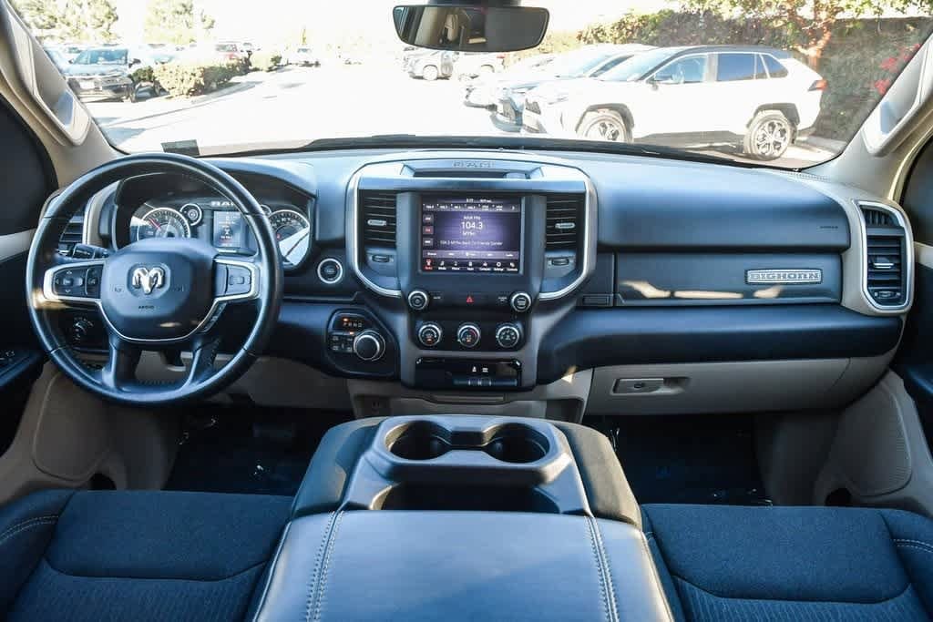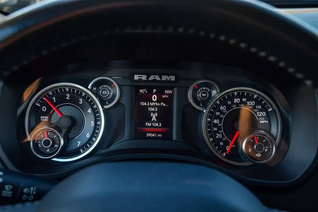 Granite Crystal Metallic Clearcoat 2020 Ram 1500 Big Horn/Lone Star 4WD 8-Speed Automatic HEMI 5.7L V8 Multi Displacement VVT 2nd Row In Floor Storage Bins, 3 Rear Seat Head Restraints, 4 Way Front Headrests, 4-Wheel Disc Brakes, 48V Belt Starter Generator, 6 Speakers, Alloy wheels, Auto-Dimming Rear-View Mirror, Big Horn IP Badge, Big Horn Level 1 Equipment Group, Black Premium Power Mirrors, Brake assist, Bumpers: chrome, Class IV Receiver Hitch, Cloth Bench Seat, Cluster 3.5 TFT Color Display, Driver door bin, Dual front impact airbags, Dual front side impact airbags, Electronic Stability Control, Foam Bottle Insert (Door Trim Panel), Front anti-roll bar, Front Center Armrest w/Storage, Front Seat Back Map Pockets, Front wheel independent suspension, Glove Box Lamp, GPS Antenna Input, Heated door mirrors, Illuminated entry, Leather steering wheel, Occupant sensing airbag, Overhead airbag, Overhead console, Panic alarm, ParkView Rear Back-Up Camera, Passenger door bin, Passenger vanity mirror, Power 4-Way Driver Lumbar Adjust, Power 8-Way Driver Seat, Power Adjustable Pedals, Power door mirrors, Radio: Uconnect 3 w/5 Display, Radio: Uconnect 4 w/8.4 Display, Rear 60/40 Folding Seat, Rear anti-roll bar, Rear Dome w/On/Off Switch Lamp, Rear Power Sliding Window, Rear seat center armrest, Rear step bumper, Rear Window Defroster, Remote keyless entry, SiriusXM Satellite Radio, Speed control, Split folding rear seat, Steering wheel mounted audio controls, Sun Visors w/Illuminated Vanity Mirrors, Telescoping steering wheel, Tilt steering wheel, Universal Garage Door Opener, Wheels: 20 x 9 Aluminum Chrome Clad.