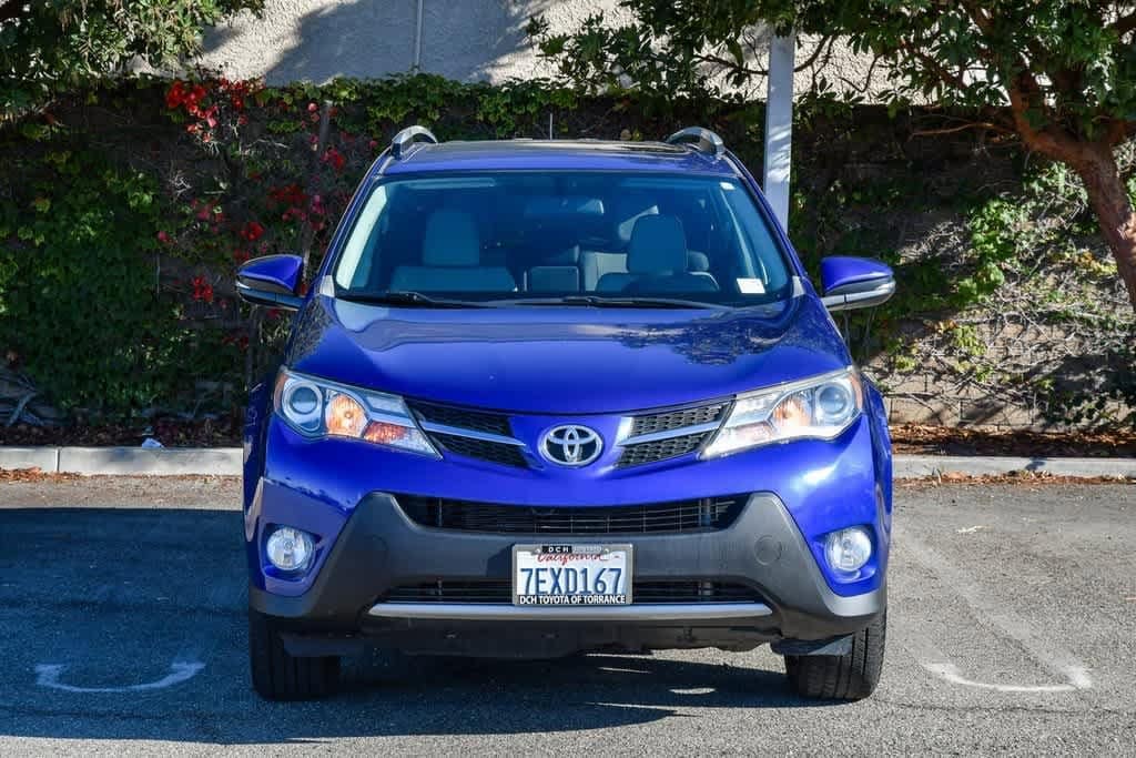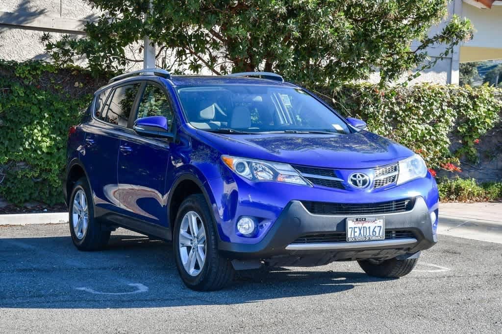 CARFAX One-Owner. Blue Crush Metallic 2014 Toyota RAV4 XLE FWD 6-Speed Automatic 2.5L 4-Cylinder DOHC Dual VVT-i 17 x 7.0J Alloy Wheels, 4-Wheel Disc Brakes, 6 Speakers, Alloy wheels, AM/FM radio: SiriusXM, Automatic temperature control, Brake assist, Bumpers: body-color, CD player, Driver door bin, Driver vanity mirror, Dual front impact airbags, Dual front side impact airbags, Electronic Stability Control, Exterior Parking Camera Rear, Fabric Seat Trim, Four wheel independent suspension, Front anti-roll bar, Front Bucket Seats, Front Center Armrest, Front dual zone A/C, Front fog lights, Front Sport Seats, Heated door mirrors, Illuminated entry, Knee airbag, Occupant sensing airbag, Overhead airbag, Panic alarm, Passenger door bin, Passenger vanity mirror, Power door mirrors, Power moonroof, Radio data system, Radio: Entune Audio Plus AM/FM/CD/MP3/WMA Playback, Rear anti-roll bar, Rear seat center armrest, Remote keyless entry, Roof rack: rails only, Speed control, Speed-sensing steering, Split folding rear seat, Spoiler, Steering wheel mounted audio controls, Telescoping steering wheel, Tilt steering wheel, Turn signal indicator mirrors.