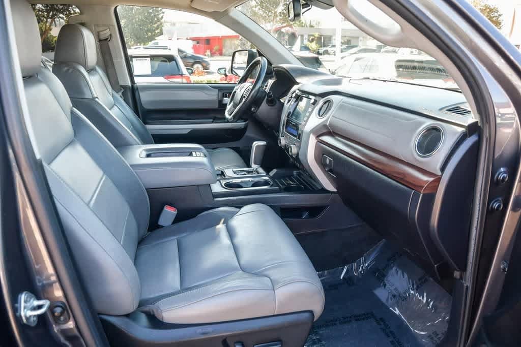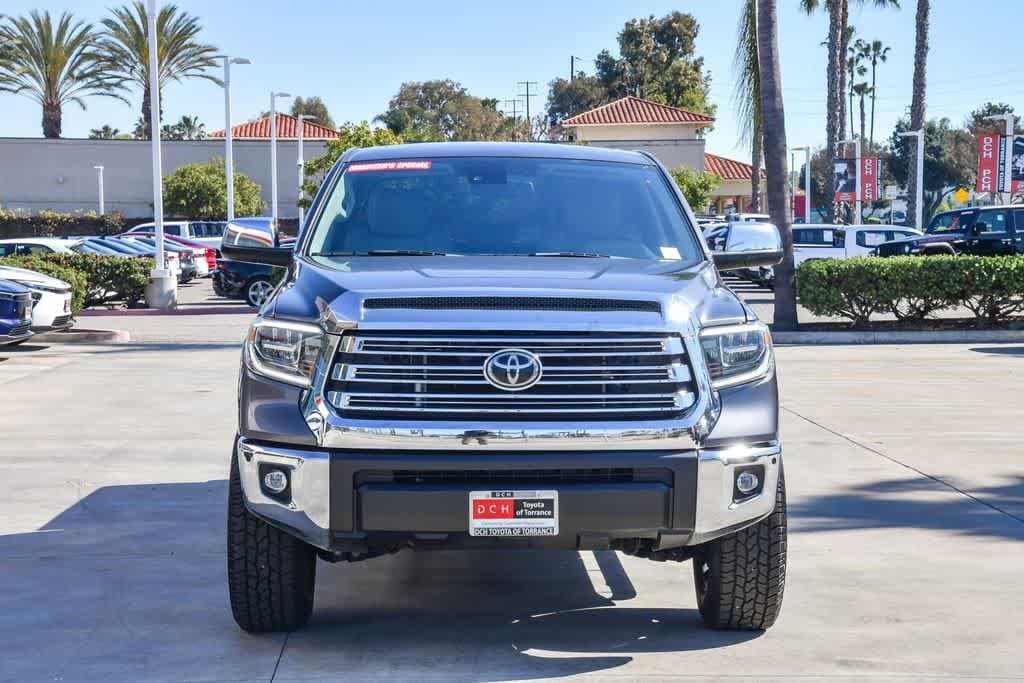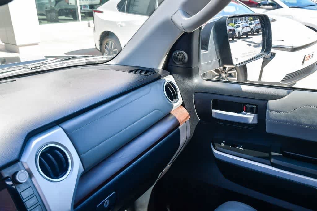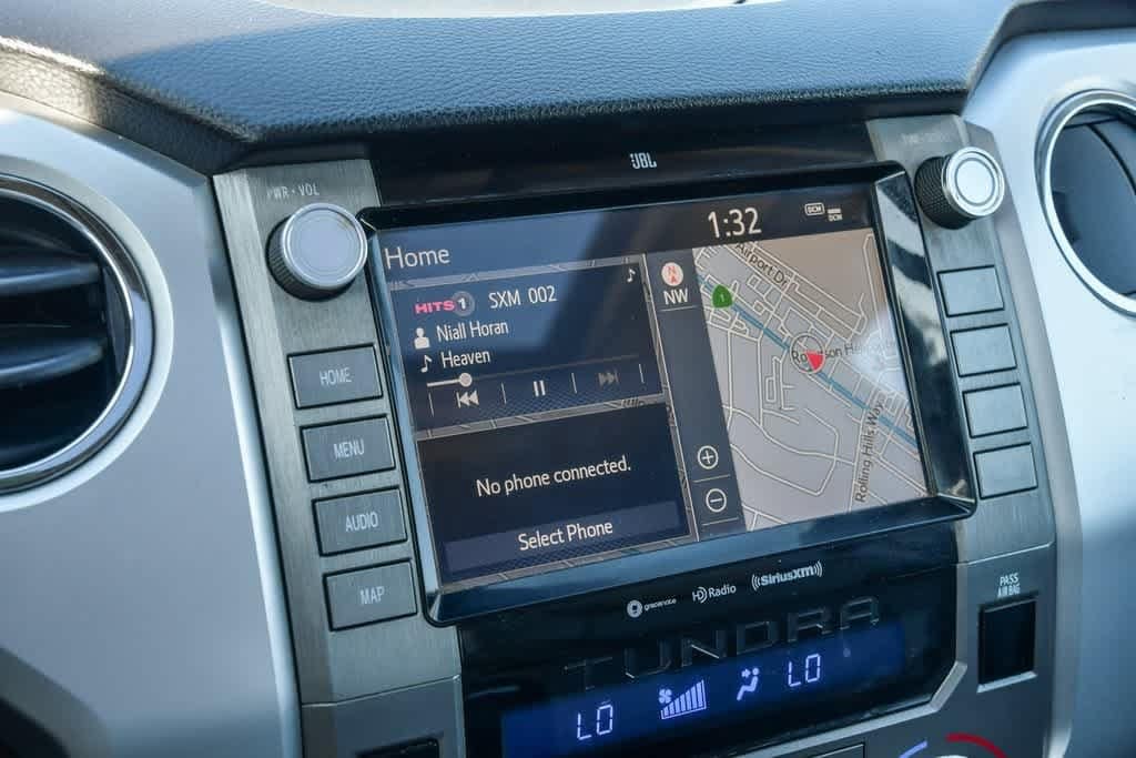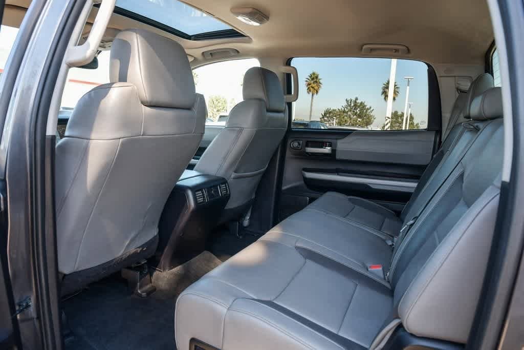 CARFAX One-Owner. Magnetic Gray Metallic 2021 Toyota Tundra Limited RWD 6-Speed Automatic Electronic with Overdrive i-Force 5.7L V8 DOHC 32V LEV 20 x 8J Split 5-Spoke Alloy Disc Wheels, 4-Wheel Disc Brakes, 9 Speakers, Alloy wheels, AM/FM radio: SiriusXM, Anti-Theft Immobilizer w/Alarm, Apple CarPlay/Android Auto, Automatic temperature control, Blind Spot Monitor w/Rear Cross Traffic Alert, Brake assist, Color-Keyed Rear Bumper, Driver vanity mirror, Dual front impact airbags, Dual front side impact airbags, Electronic Stability Control, Emergency communication system: Safety Connect with 1-year trial, Exterior Parking Camera Rear, Front & Rear Clearance Backup Sonar, Front anti-roll bar, Front Bucket Seats, Front Center Armrest, Front dual zone A/C, Front wheel independent suspension, Garage door transmitter: HomeLink, Heated door mirrors, Heated Front Bucket Seats, Heated front seats, Illuminated entry, Knee airbag, Leather Seat Trim, Limited Premium Package, Navigation system: Dynamic Navigation (3-year trial), Occupant sensing airbag, Overhead airbag, Overhead console, Panic alarm, Passenger door bin, Passenger vanity mirror, Power door mirrors, Power driver seat, Power passenger seat, Power Tilt & Slide Moonroof w/Sliding Sunshade, Power Windows w/Front Auto Up/Down, Radio: Premium JBL Audio w/Dynamic Navigation, Rear seat center armrest, Rear step bumper, Remote Connect, Remote keyless entry, Running Boards, Running Boards (KL), Safety Connect, Security system, Service Connect, SiriusXM Radio, Speed control, Speed-sensing steering, Split folding rear seat, Spray-On Bedliner, Steering wheel mounted audio controls, Telescoping steering wheel, Tilt steering wheel.
