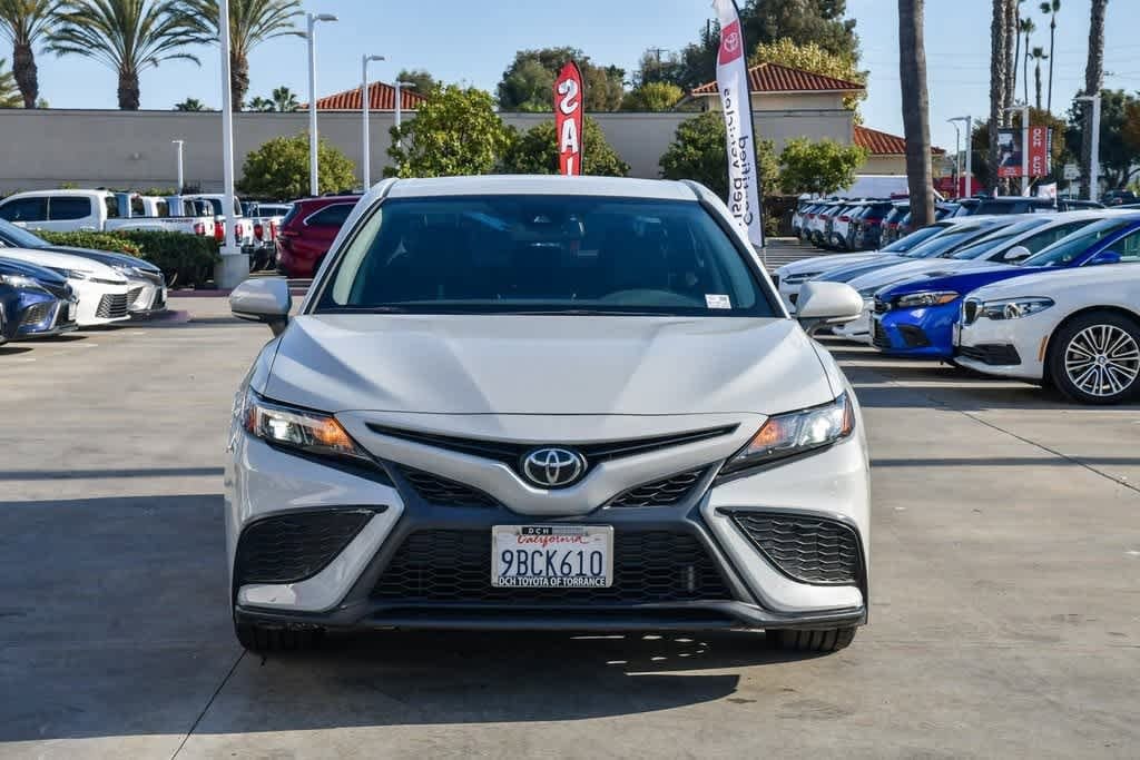 CARFAX One-Owner. Clean CARFAX. Predawn Gray Mica 2022 Toyota Camry SE FWD 8-Speed Automatic 2.5L I4 DOHC 16V 4-Wheel Disc Brakes, 6 Speakers, Alloy wheels, AM/FM radio: SiriusXM, Apple CarPlay/Android Auto, Auto-Dimming Rear-View Mirror, Automatic temperature control, Brake assist, Bumpers: body-color, Convenience Package, Driver door bin, Driver vanity mirror, Dual front impact airbags, Dual front side impact airbags, Electronic Stability Control, Emergency communication system: Safety Connect with 1-year trial, Exterior Parking Camera Rear, Fabric Seat Trim w/Sport SofTex, Four wheel independent suspension, Front anti-roll bar, Front Bucket Seats, Front Center Armrest, Front dual zone A/C, Front reading lights, Heated door mirrors, HomeLink, Illuminated entry, Knee airbag, Occupant sensing airbag, Overhead airbag, Overhead console, Panic alarm, Passenger door bin, Passenger vanity mirror, Power door mirrors, Power driver seat, Radio: AM/FM Audio System, Rear anti-roll bar, Rear seat center armrest, Rear side impact airbag, Remote keyless entry, Security system, Smart Key System w/Push Button Start, Speed control, Speed-sensing steering, Split folding rear seat, Spoiler, Steering wheel mounted audio controls, Telescoping steering wheel, Tilt steering wheel, Turn signal indicator mirrors, Wheels: 8.0J x 18 Black Machined-Finish Alloy.