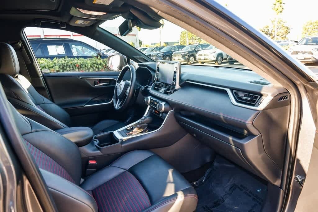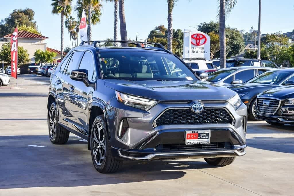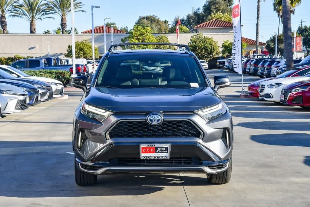 Magnetic Gray Metallic 2022 Toyota RAV4 Prime XSE AWD CVT 2.5L 4-Cylinder DOHC 19 Alloy Wheels, 3-Spoke Heated Leather Steering Wheel, 4-Wheel Disc Brakes, 6 Speakers, Alloy wheels, AM/FM radio: SiriusXM, Apple CarPlay/Android Auto, Auto-dimming Rear-View mirror, Automatic temperature control, Brake assist, Bumpers: body-color, Driver door bin, Driver vanity mirror, Dual front impact airbags, Dual front side impact airbags, Electronic Stability Control, Emergency communication system: Safety Connect with 1-year trial, Exterior Parking Camera Rear, Four wheel independent suspension, Front anti-roll bar, Front Bucket Seats, Front Center Armrest, Front dual zone A/C, Garage door transmitter: HomeLink, Heated door mirrors, Heated front seats, Heated Front Sport Seats, Illuminated entry, Knee airbag, Leather Shift Knob, Occupant sensing airbag, Outside temperature display, Overhead airbag, Overhead console, Panic alarm, Passenger door bin, Passenger vanity mirror, Power door mirrors, Power driver seat, Power Liftgate, Power moonroof, Radio data system, Radio: Audio Plus, Rain Sensing Wipers w/De-Icer Function, Rear anti-roll bar, Rear seat center armrest, Remote keyless entry, Roof rack: rails only, Security system, SofTex Seat Trim (EC), Speed control, Speed-sensing steering, Split folding rear seat, Spoiler, Steering wheel mounted audio controls, Telescoping steering wheel, Tilt steering wheel, Turn signal indicator mirrors, Weather Package.