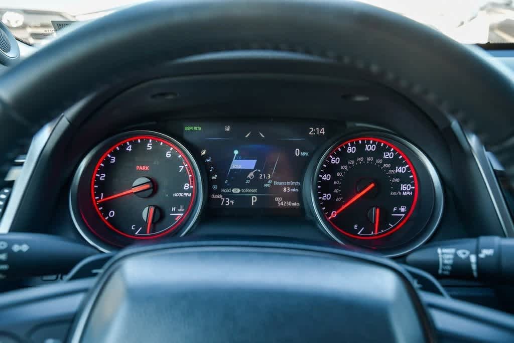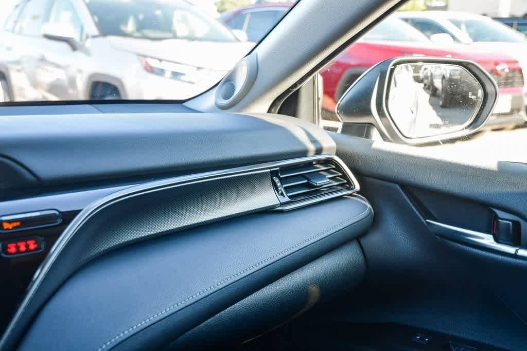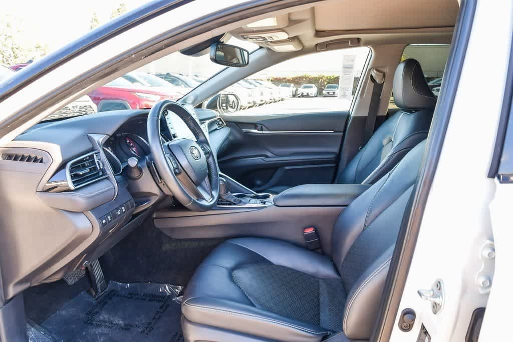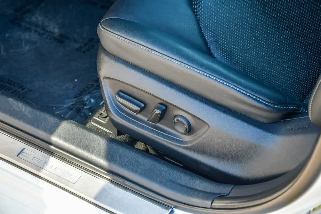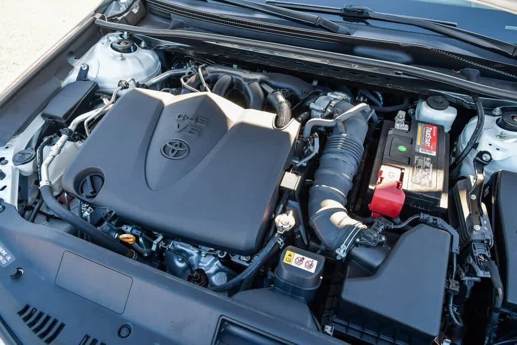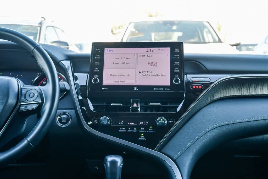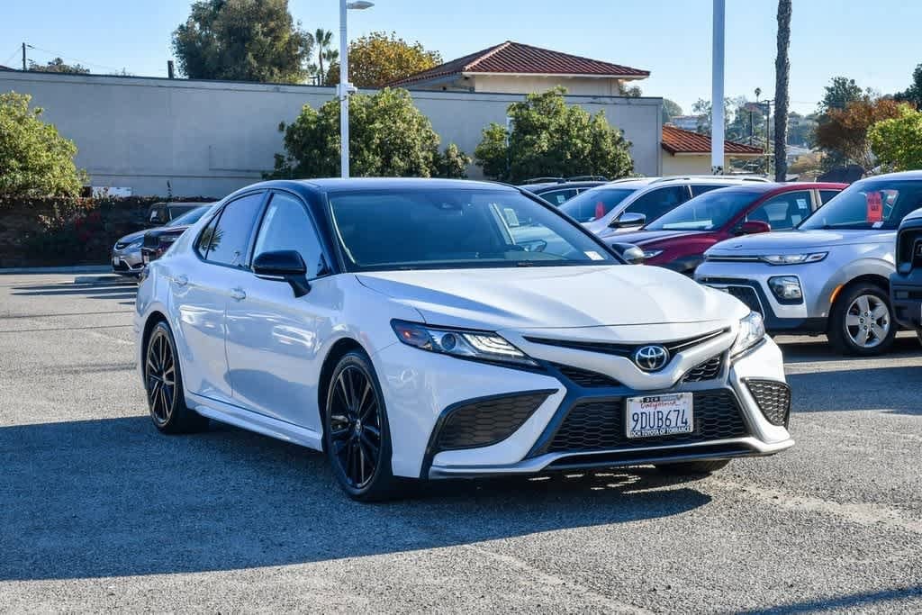 CARFAX One-Owner. Wind Chill Pearl/Midnight Black Metallic 2023 Toyota Camry XSE FWD 8-Speed Automatic 3.5L V6 DOHC 24V 4-Wheel Disc Brakes, Alloy wheels, AM/FM radio: SiriusXM, Apple CarPlay/Android Auto, Automatic temperature control, Brake assist, Bumpers: body-color, Driver door bin, Driver vanity mirror, Dual front impact airbags, Dual front side impact airbags, Electronic Stability Control, Emergency communication system: Safety Connect (1-year trial), Exterior Parking Camera Rear, Four wheel independent suspension, Front anti-roll bar, Front Bucket Seats, Front Center Armrest, Front dual zone A/C, Front reading lights, Heated door mirrors, Illuminated entry, Knee airbag, Leather steering wheel, Occupant sensing airbag, Overhead airbag, Overhead console, Panic alarm, Passenger door bin, Passenger vanity mirror, Power door mirrors, Power driver seat, Power passenger seat, Radio: Audio Plus w/JBL, Rear anti-roll bar, Rear reading lights, Rear seat center armrest, Rear side impact airbag, Remote keyless entry, Security system, Speed control, Speed-sensing steering, Split folding rear seat, Spoiler, Sport SofTex Seat Trim w/Fabric Inserts, Steering wheel mounted audio controls, Telescoping steering wheel, Tilt steering wheel, Turn signal indicator mirrors, Wheels: 8.5J x 19 Alloy.