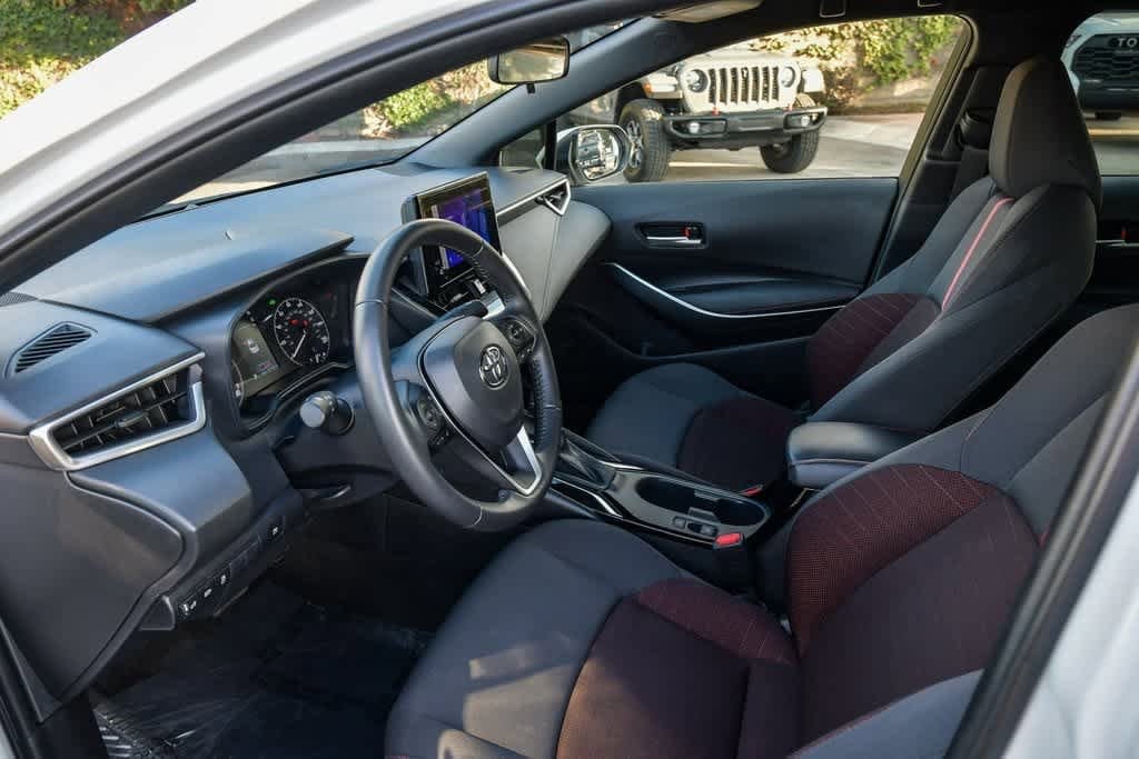 CARFAX One-Owner. Certified. Ice Cap 2023 Toyota Corolla Hybrid SE FWD CVT 1.8L DOHC 16V VVT 4-Wheel Disc Brakes, 6 Speakers, Alloy wheels, AM/FM radio: SiriusXM, Automatic temperature control, Brake assist, Bumpers: body-color, Driver door bin, Driver vanity mirror, Dual front impact airbags, Dual front side impact airbags, Electronic Stability Control, Emergency communication system: Safety Connect (up to 10-year trial subscription), Exterior Parking Camera Rear, Four wheel independent suspension, Front anti-roll bar, Front Bucket Seats, Front Center Armrest, Illuminated entry, Knee airbag, Occupant sensing airbag, Overhead airbag, Panic alarm, Passenger door bin, Passenger vanity mirror, Power door mirrors, Radio: 8 Toyota Audio Multimedia, Rear anti-roll bar, Rear seat center armrest, Rear side impact airbag, Remote keyless entry, Speed control, Split folding rear seat, Steering wheel mounted audio controls, Telescoping steering wheel, Tilt steering wheel, Trip computer, Wheels: 18 Gloss Graphite Alloy.