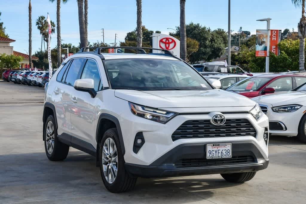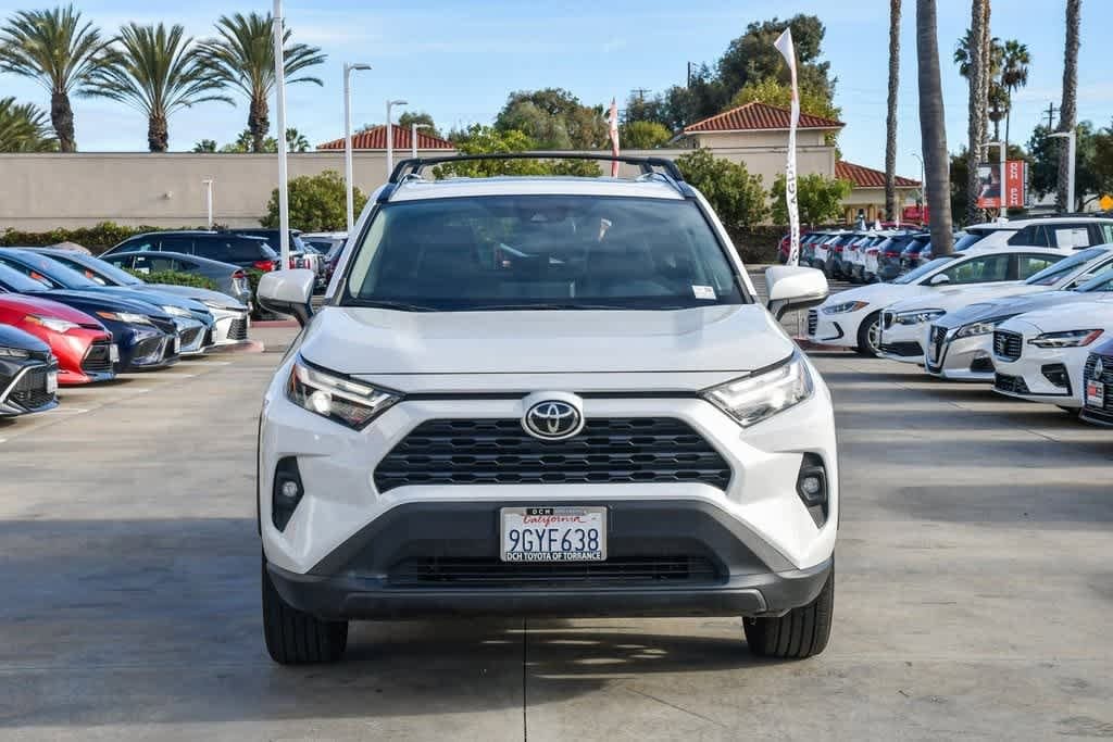 CARFAX One-Owner. Wind Chill Pearl 2023 Toyota RAV4 XLE Premium FWD 8-Speed Automatic 2.5L 4-Cylinder DOHC Dual VVT-i 3 Spoke Leather Steering Wheel, 4-Wheel Disc Brakes, 6 Speakers, Alloy wheels, AM/FM radio: SiriusXM, Automatic temperature control, Brake assist, Bumpers: body-color, Driver door bin, Driver vanity mirror, Dual front impact airbags, Dual front side impact airbags, Electronic Stability Control, Emergency communication system: Safety Connect (10-year trial), Exterior Parking Camera Rear, Four wheel independent suspension, Front anti-roll bar, Front Bucket Seats, Front Center Armrest, Front Door Smart Key System w/Push Button Start, Front dual zone A/C, Heated door mirrors, Illuminated entry, Knee airbag, Leather Shift Knob, Occupant sensing airbag, Overhead airbag, Overhead console, Panic alarm, Passenger door bin, Passenger vanity mirror, Power door mirrors, Power driver seat, Power Liftgate, Power moonroof, Radio: AM/FM/XM Audio System, Rear anti-roll bar, Rear seat center armrest, Remote keyless entry, SofTex Seat Trim, Speed control, Speed-sensing steering, Split folding rear seat, Spoiler, Steering wheel mounted audio controls, Telescoping steering wheel, Tilt steering wheel, Turn signal indicator mirrors, Wheels: 19 5-Spoke Silver Alloy.