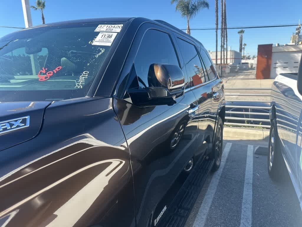 Smoked Mesquite 2023 Toyota Sequoia Limited 4WD 10-Speed Automatic V6 Hybrid 3rd row seats: split-bench, 4-Wheel Disc Brakes, 8 Speakers, Alloy wheels, AM/FM radio: SiriusXM, Anti-whiplash front head restraints, Apple CarPlay/Android Auto, Auto-dimming door mirrors, Auto-dimming Rear-View mirror, Automatic temperature control, Brake assist, Bumpers: body-color, Driver door bin, Driver vanity mirror, Dual front impact airbags, Dual front side impact airbags, Electronic Stability Control, Emergency communication system: Safety Connect (10-year trial), Front anti-roll bar, Front Bucket Seats, Front Center Armrest w/Storage, Front dual zone A/C, Front wheel independent suspension, Garage door transmitter: HomeLink, Heated & Ventilated Front Seats, Heated door mirrors, Heated front seats, Heated steering wheel, Illuminated entry, Knee airbag, Leather Shift Knob, Leather steering wheel, Memory seat, Navigation system: Drive Connect (1 year trial) includes Cloud Navigation with real time traffic and Google POI, Occupant sensing airbag, Overhead airbag, Overhead console, Panic alarm, Passenger door bin, Passenger vanity mirror, Power door mirrors, Power driver seat, Power Liftgate, Power passenger seat, Power Tilt/Slide Panoramic Roof w/Power Sunshade, Radio: Toyota Multimedia w/14 Display, Rear air conditioning, Rear seat center armrest, Reclining 3rd row seat, Remote keyless entry, Security system, SofTex Seat Trim, Speed control, Speed-sensing steering, Split folding rear seat, Spoiler, Steering wheel mounted audio controls, Telescoping steering wheel, Tilt steering wheel, Turn signal indicator mirrors, Ventilated front seats, Wheels: 20 Machined-Finish Alloy.