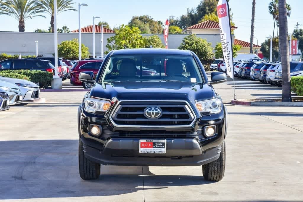 CARFAX One-Owner. Black 2023 Toyota Tacoma SR5 V6 RWD 6-Speed Automatic 3.5L V6 6 Speakers, ABS brakes, Alloy wheels, AM/FM radio: SiriusXM, Anti-whiplash front head restraints, Apple CarPlay/Android Auto, Auto-Dimming Inside Rear-View Mirror, Auto-dimming Rear-View mirror, Automatic temperature control, Bar Gray Ring Chrome Front Grille, Black Headlamp Bezel, Black Overfenders, Brake assist, Bumpers: body-color, Color-Keyed Overfenders, Daytime Running Lamps, Driver door bin, Dual front impact airbags, Dual front side impact airbags, Electronic Stability Control, Emergency communication system: Safety Connect (1-year trial), Exterior Parking Camera Rear, Fabric Seat Trim, Front anti-roll bar, Front Bucket Seats, Front Center Armrest, Front Door Smart Key System w/Push Button Start, Front dual zone A/C, Front Fog & Driving Lamp, Front reading lights, Front Seats, Front wheel independent suspension, Heated door mirrors, Illuminated entry, Knee airbag, Occupant sensing airbag, Overhead airbag, Overhead console, Panic alarm, Passenger cancellable airbag, Passenger door bin, Power door mirrors, Power driver seat, Power windows, Radio: Audio, Rear step bumper, Remote keyless entry, Speed control, Speed-sensing steering, Steering wheel mounted audio controls, SX Package, Telescoping steering wheel, Tilt steering wheel, Wheels: 16 Black Alloy.