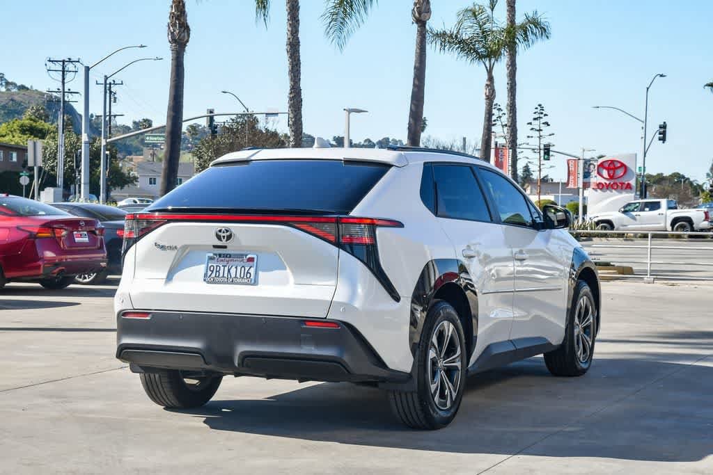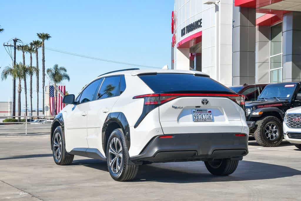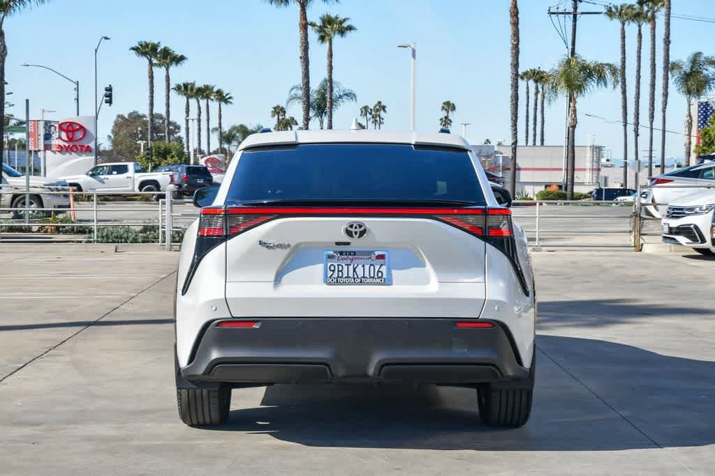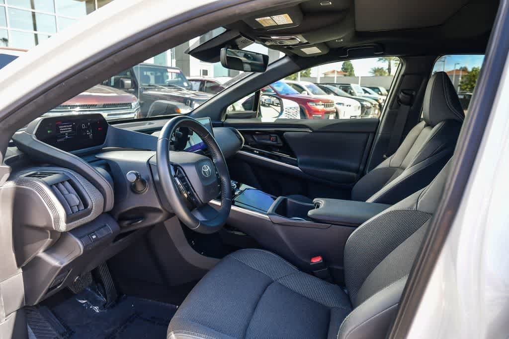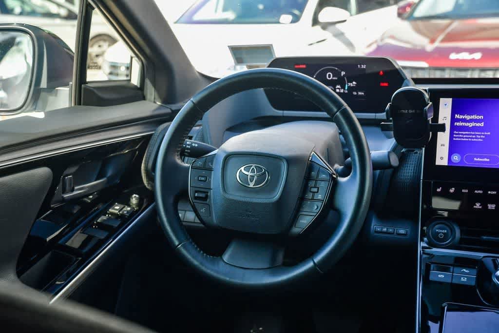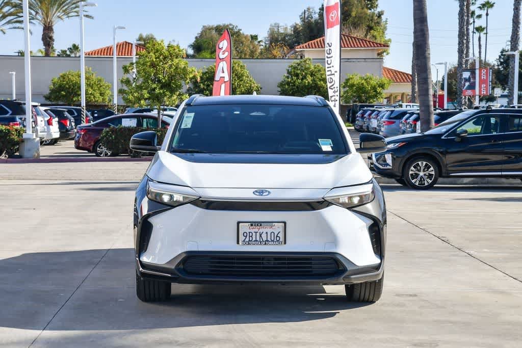 CARFAX One-Owner. Wind Chill Pearl 2023 Toyota bZ4X FWD Single-Speed Automatic Electric Motor 4-Wheel Disc Brakes, 6 Speakers, Alloy wheels, AM/FM radio: SiriusXM, Apple CarPlay/Android Auto, Auto-dimming Rear-View mirror, Automatic temperature control, Brake assist, Bumpers: body-color, Driver door bin, Driver vanity mirror, Dual front impact airbags, Dual front side impact airbags, Electronic Stability Control, Emergency communication system: Safety Connect (10-year trial), Exterior Parking Camera Rear, Four wheel independent suspension, Front anti-roll bar, Front Bucket Seats, Front Center Armrest, Front dual zone A/C, Front reading lights, Heated door mirrors, Illuminated entry, Knee airbag, Leather steering wheel, Navigation system: Drive Connect (3 year trial) includes Cloud Navigation with real time traffic and Google POI, Occupant sensing airbag, Overhead airbag, Panic alarm, Passenger door bin, Passenger vanity mirror, Power door mirrors, Radio data system, Radio: 12.3 Toyota Audio Multimedia w/6 Speakers, Rear anti-roll bar, Rear seat center armrest, Remote keyless entry, Security system, Speed control, Speed-sensing steering, Split folding rear seat, Spoiler, Steering wheel mounted audio controls, Telescoping steering wheel, Tilt steering wheel, Turn signal indicator mirrors, Wheels: 18 Alloy w/Two-Tone Covers.