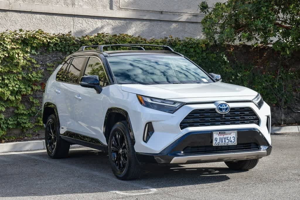 CARFAX One-Owner. Wind Chill Pearl/Midnight Black Metallic 2024 Toyota RAV4 Hybrid XSE AWD eCVT 2.5L 4-Cylinder 12.3 Multi Information Display, 4-Wheel Disc Brakes, 6 Speakers, Active Cruise Control, Advanced Technology Package, Alloy wheels, AM/FM radio: SiriusXM, Auto-dimming Rear-View mirror, Automatic temperature control, Axle Ratio: TBD, Blind Spot Monitor, Body Side Molding & Door Protection Package (TMS), Brake assist, Bumpers: body-color, Driver door bin, Driver Seat w/2-Position Memory Function, Driver vanity mirror, Dual front impact airbags, Dual front side impact airbags, Electronic Stability Control, Emergency communication system: Safety Connect (1-year trial), Exterior Parking Camera Rear, Four wheel independent suspension, Front & Rear Parking Assist w/Automated Braking, Front anti-roll bar, Front Bucket Seats, Front Center Armrest, Front dual zone A/C, Garage door transmitter: HomeLink, Heated 3-Spoke Leather Steering Wheel, Heated door mirrors, Heated Front Seats, Heated front seats, Illuminated entry, Intelligent Clearance Sonar (ICS), Knee airbag, Leather Shift Knob, Leather steering wheel, Mixed Media Seat Trim, Occupant sensing airbag, Overhead airbag, Panic alarm, Panoramic Glass Roof, Panoramic View Monitor, Passenger door bin, Passenger vanity mirror, Power door mirrors, Power driver seat, Power Liftgate, Qi-Compatible Wireless Smartphone Charging, Radio: AM/FM/XM Audio System, Rear anti-roll bar, Rear seat center armrest, Remote keyless entry, Security system, Smart Key System w/Push Button Start, Speed control, Speed-sensing steering, Split folding rear seat, Spoiler, Steering wheel mounted audio controls, Telescoping steering wheel, Tilt steering wheel, Turn signal indicator mirrors, Weather Package, Wheels: 18 x 7.0J Black-Painted Aluminum Alloy.