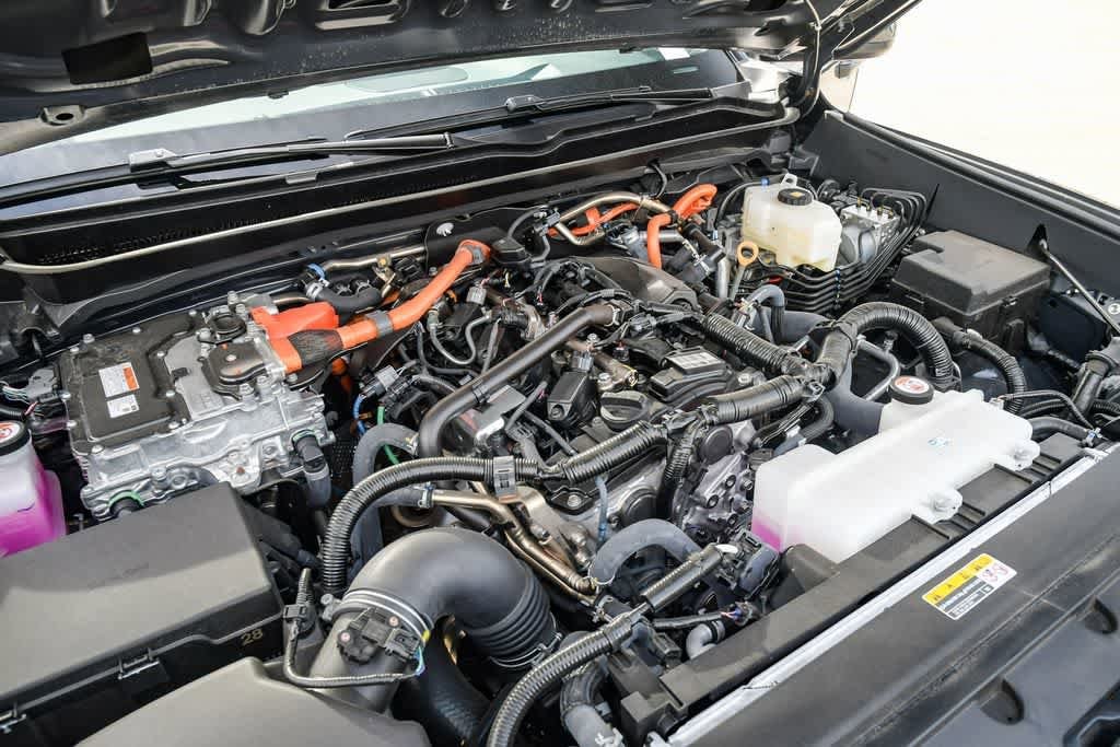 Navigation, 4x4, Back-Up Camera, Hybrid, iPod/MP3 Input, Onboard Communications System, Trailer Hitch, Aluminum Wheels, Keyless Start, Cross-Traffic Alert, Blind Spot Monitor, WiFi Hotspot, Lane Keeping Assist Toyota TRD Off Road Hybrid with Underground exterior and GRAY/BLACK/TITANIUM interior features a 4 Cylinder Engine.