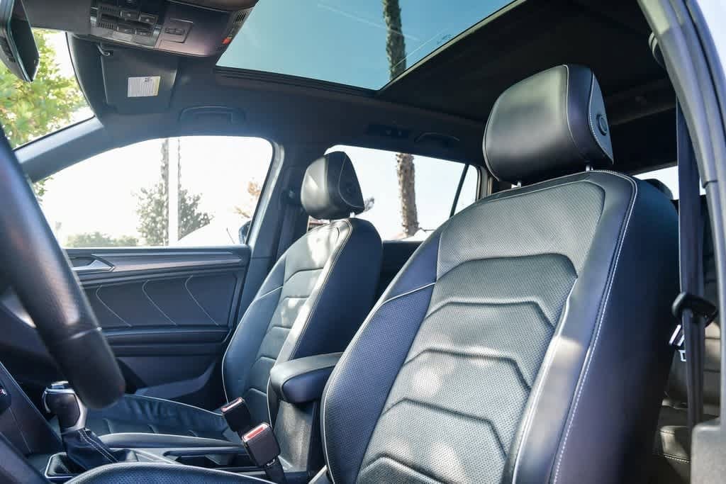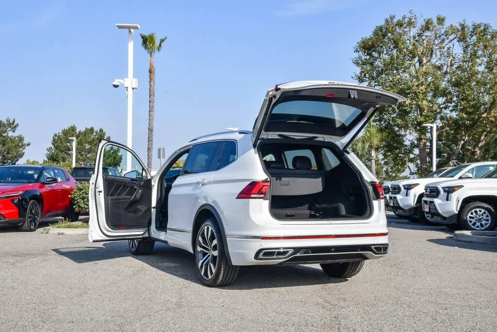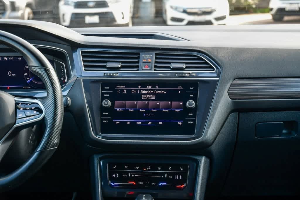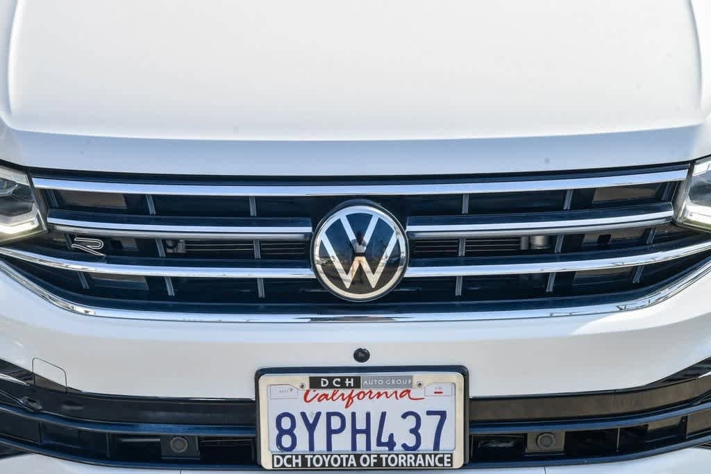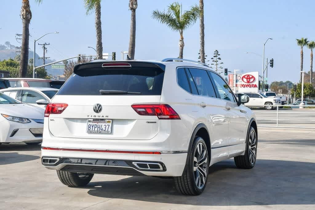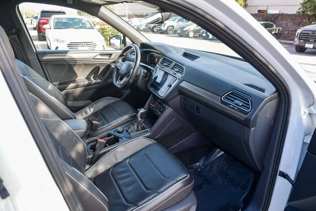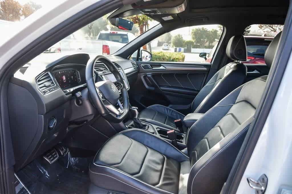 Oryx White Pearl 2022 Volkswagen Tiguan 2.0T SEL R-Line AWD 8-Speed Automatic with Tiptronic 2.0L TSI DOHC 4-Wheel Disc Brakes, 4-Wheel Independent Suspension, 8 Speakers, Alloy wheels, AM/FM radio: SiriusXM with 360L, Auto-dimming Rear-View mirror, Automatic temperature control, Brake assist, Bumpers: body-color, Driver door bin, Driver vanity mirror, Dual front impact airbags, Dual front side impact airbags, Electronic Stability Control, Emergency communication system: Car-Net, Four wheel independent suspension, Front anti-roll bar, Front Bucket Seats, Front Center Armrest, Front dual zone A/C, Front reading lights, Heated door mirrors, Heated front seats, Heated steering wheel, Heated/Ventilated Front Comfort Sport Seats, Illuminated entry, Leather Shift Knob, Leather steering wheel, Memory seat, Navigation system: VW Car-Net Guide & Inform, Occupant sensing airbag, Overhead airbag, Overhead console, Panic alarm, Passenger door bin, Passenger vanity mirror, Perforated Vienna Leather Seating Surfaces, Power door mirrors, Power driver seat, Power Liftgate, Power moonroof, Power passenger seat, Radio: MIB3 Discover Media AM/FM/HD, Rain sensing wipers, Rear anti-roll bar, Rear seat center armrest, Remote keyless entry, Roof rack: rails only, Security system, Speed-sensing steering, Split folding rear seat, Spoiler, Sport steering wheel, Steering wheel mounted audio controls, Telescoping steering wheel, Tilt steering wheel, Turn signal indicator mirrors, Ventilated front seats, Wheels: 20 Machined Black Alloy.