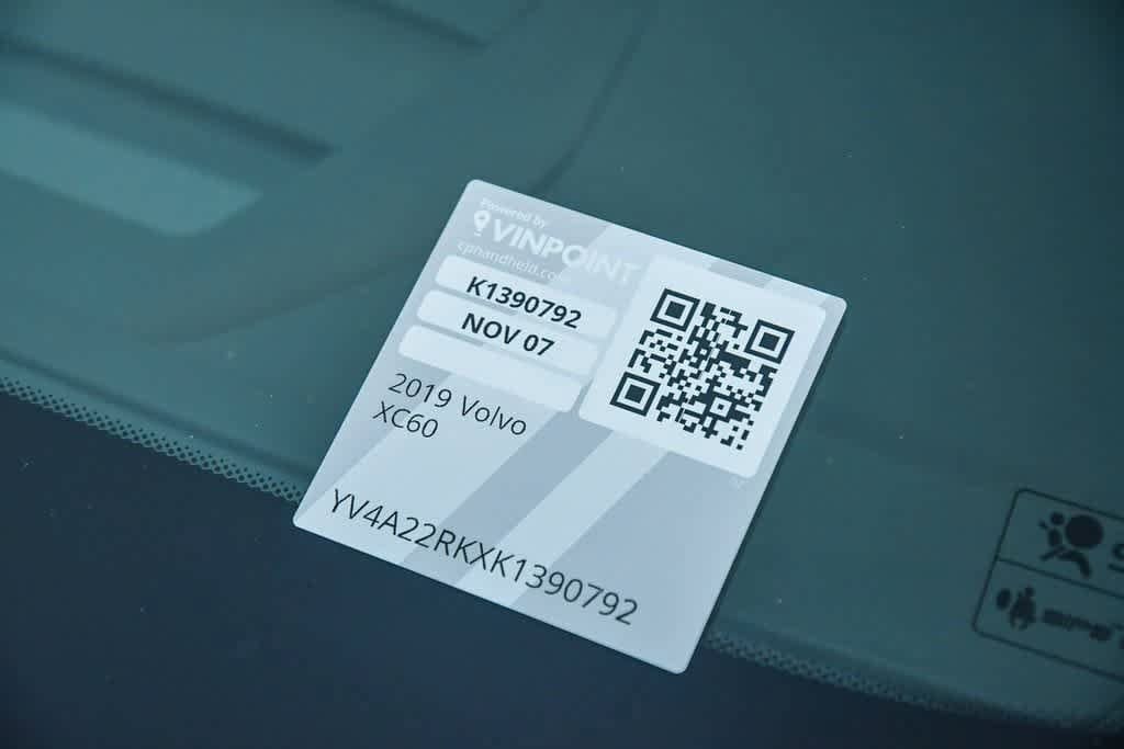 Onyx Black Metallic 2019 Volvo XC60 T6 Momentum AWD Automatic with Geartronic I4 10 Speakers, 12.3 Driver Display (Digital Instrument Cluster), 19 Alloy Wheels, 360 Degree Surroundview Camera, 4-Way Lumbar Support, 4-Wheel Disc Brakes, ABS brakes, Active Bending Lights, Advanced Package, Alloy wheels, AM/FM radio: SiriusXM, Anti-whiplash front head restraints, Apple CarPlay/Android Auto, Auto-dimming Rear-View mirror, Automatic temperature control, Automatically Dimmed Exterior Mirrors, BLIS Blind Spot Information System, Brake assist, Bumpers: body-color, Compass in Rear View Mirror, Driver & Passenger Power Cushion Extensions, Driver door bin, Driver vanity mirror, Dual front impact airbags, Dual front side impact airbags, Electric Folding Rear Headrests, Electronic Stability Control, Emergency communication system: Volvo On-Call, Exterior Parking Camera Rear, Four wheel independent suspension, Front anti-roll bar, Front Bucket Seats, Front Center Armrest, Front dual zone A/C, Graphical Head-Up Display (HUD), harman/kardon Premium Sound, Headlight High Pressure Cleaning, Heated door mirrors, Heated Front Bucket Seats, Heated front seats, Heated Steering Wheel, HomeLink Garage Door Transmitter, Illuminated entry, Integrated Booster Seats, Keyless Entry w/Illuminated Door Handles, Knee airbag, Leather Shift Knob, Leather Upholstery w/Enhanced Functionality, Leatherette Seating Surfaces, LED Front Fog Lights w/Cornering Lights, Memory seat, Multimedia Package, Navigation System, Occupant sensing airbag, Overhead airbag, Park Assist Pilot, Passenger Seat Memory, Passenger vanity mirror, Pilot Assist Driver Assistance System, Power door mirrors, Power driver seat, Power Folding Second Row Rear Seat, Power Liftgate, Power moonroof, Power passenger seat, Premium audio system: Sensus Connect, Premium Package, Radio: High Performance Audio System, Rain sensing wipers, Rear anti-roll bar, Rear seat center armrest, Remote keyless entry, Retractable Side View Mirrors, Roof rack: rails only, Sensus Navigation, Speed control, Split folding rear seat, Spoiler, Steering wheel mounted audio controls, Telescoping steering wheel, Tilt steering wheel, Turn signal indicator mirrors.